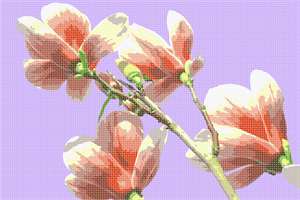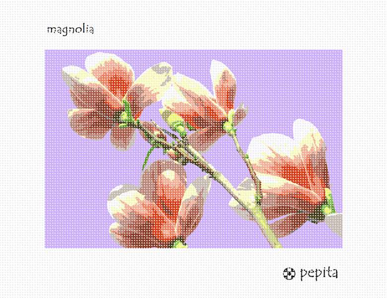 Magnolia in bloom. Magnolias symbolized dignity and nobility. In ancient China, magnolias were thought to be the perfect symbols of womanly beauty and gentleness. In the American South, white magnolias are commonly seen in bridal bouquets because the flowers are thought to reflect and emphasize the bride's purity and nobility. Flowers and floral design are among the most popular needlepoint designs. People have been stitching flowers and floral motifs for hundreds of years. Flowers are bright and pleasant, and most have underlying meanings to them.