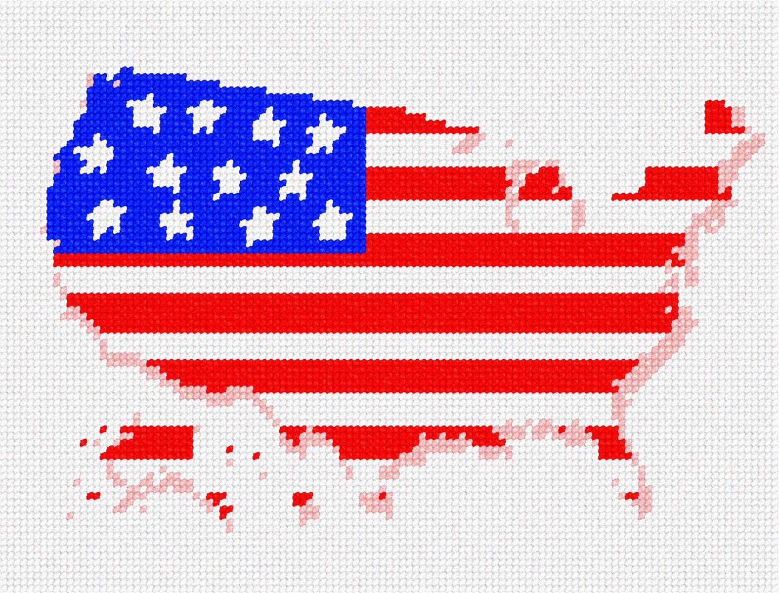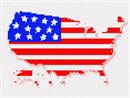 Shape of the 50 states of the USA, filled in with the colors of the flag.