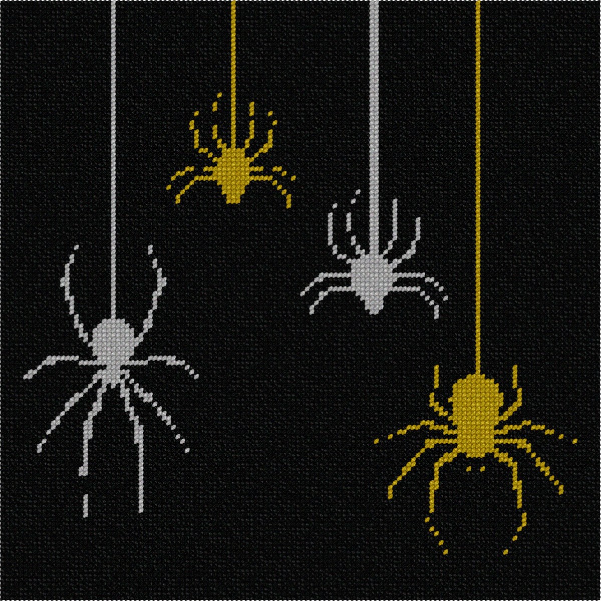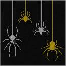 Creepy, crawly, fascinating spiders! All spiders produce silk, which comes out as a liquid and hardens when it touches air. Spiders can produce up to seven different types of silk, each with a different purpose. There are over 50,000 species of spiders. Stitch these sparkly spiders.