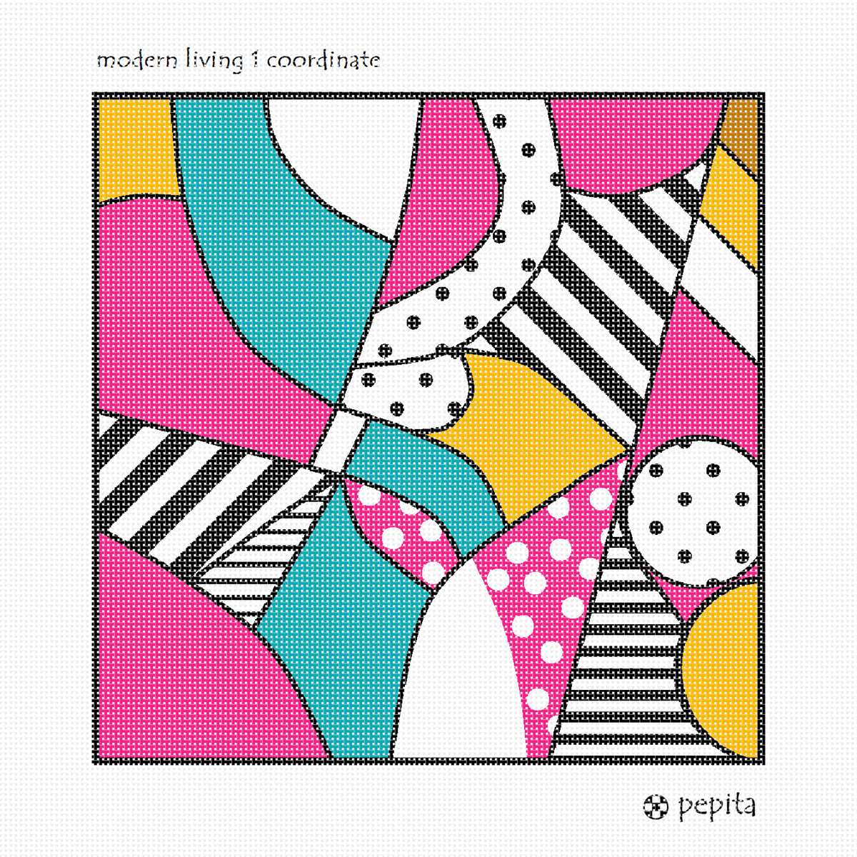 The actual modern art mural on the wall of Modern Living 1 Design by pepita needlepoint. Cool!