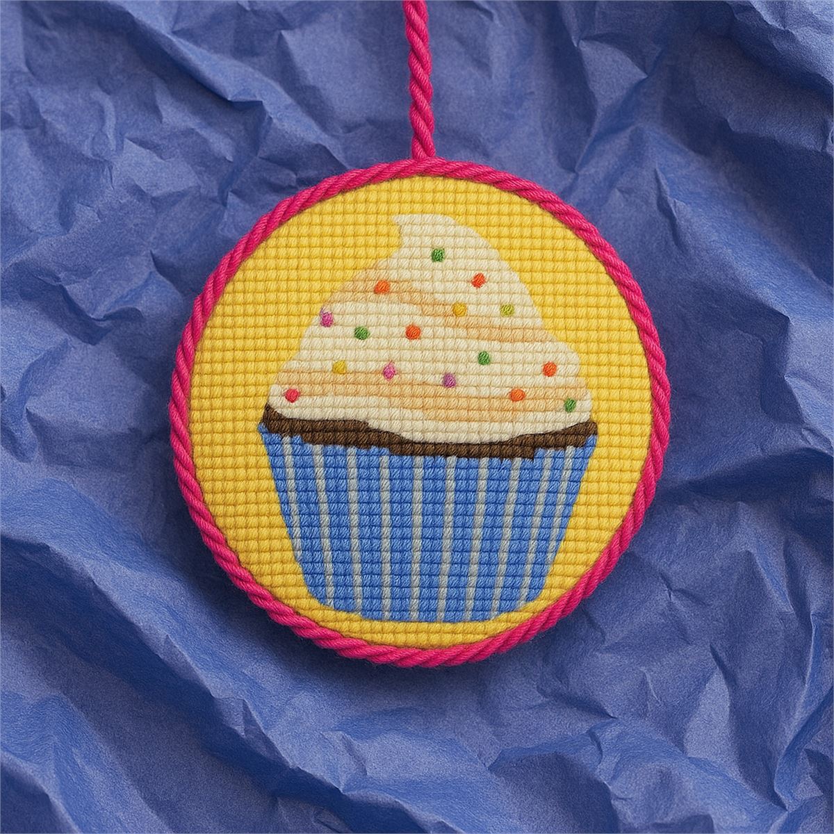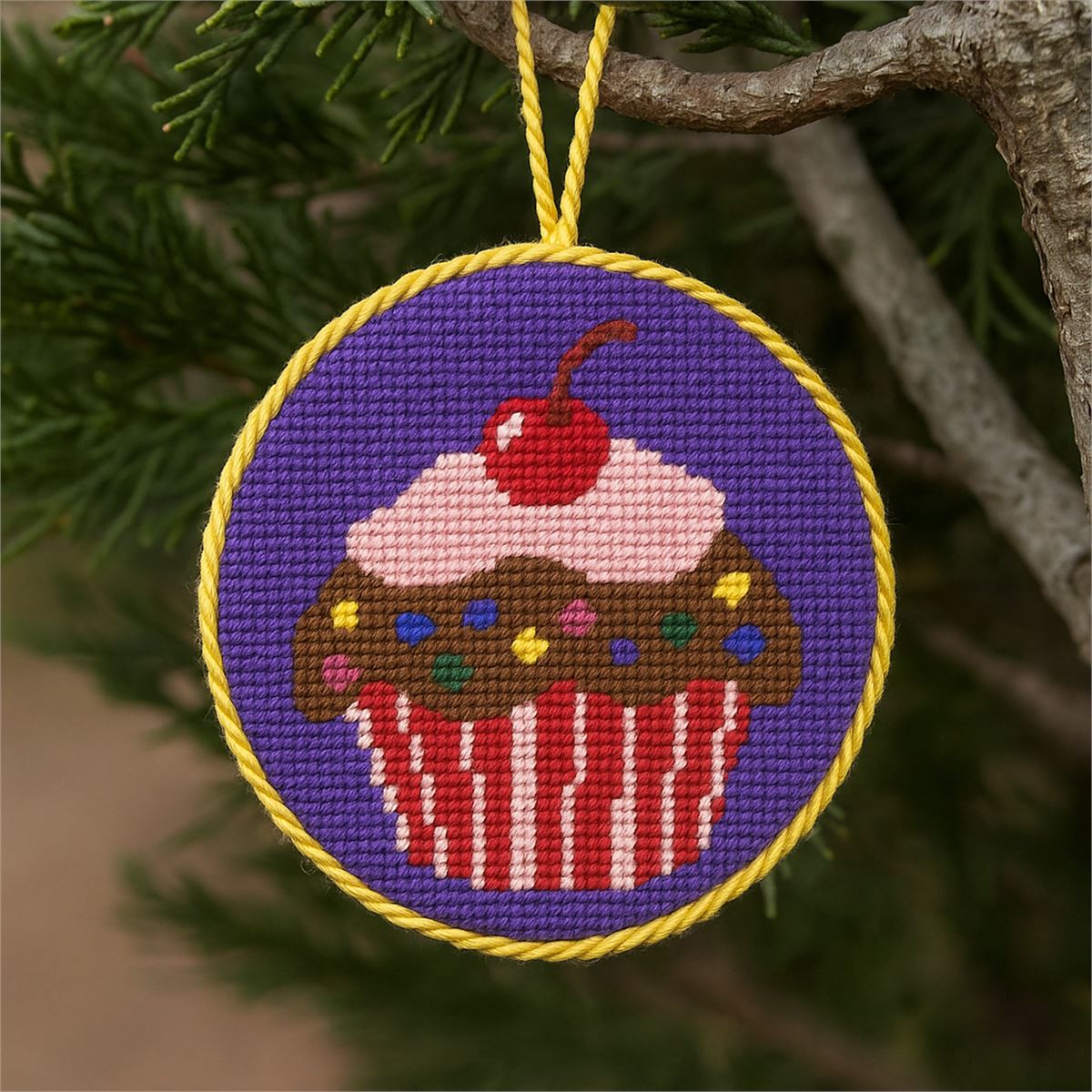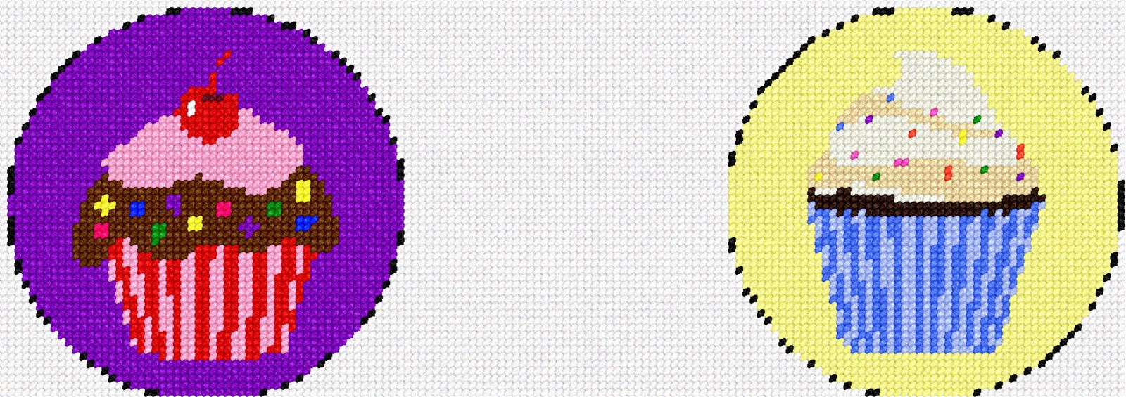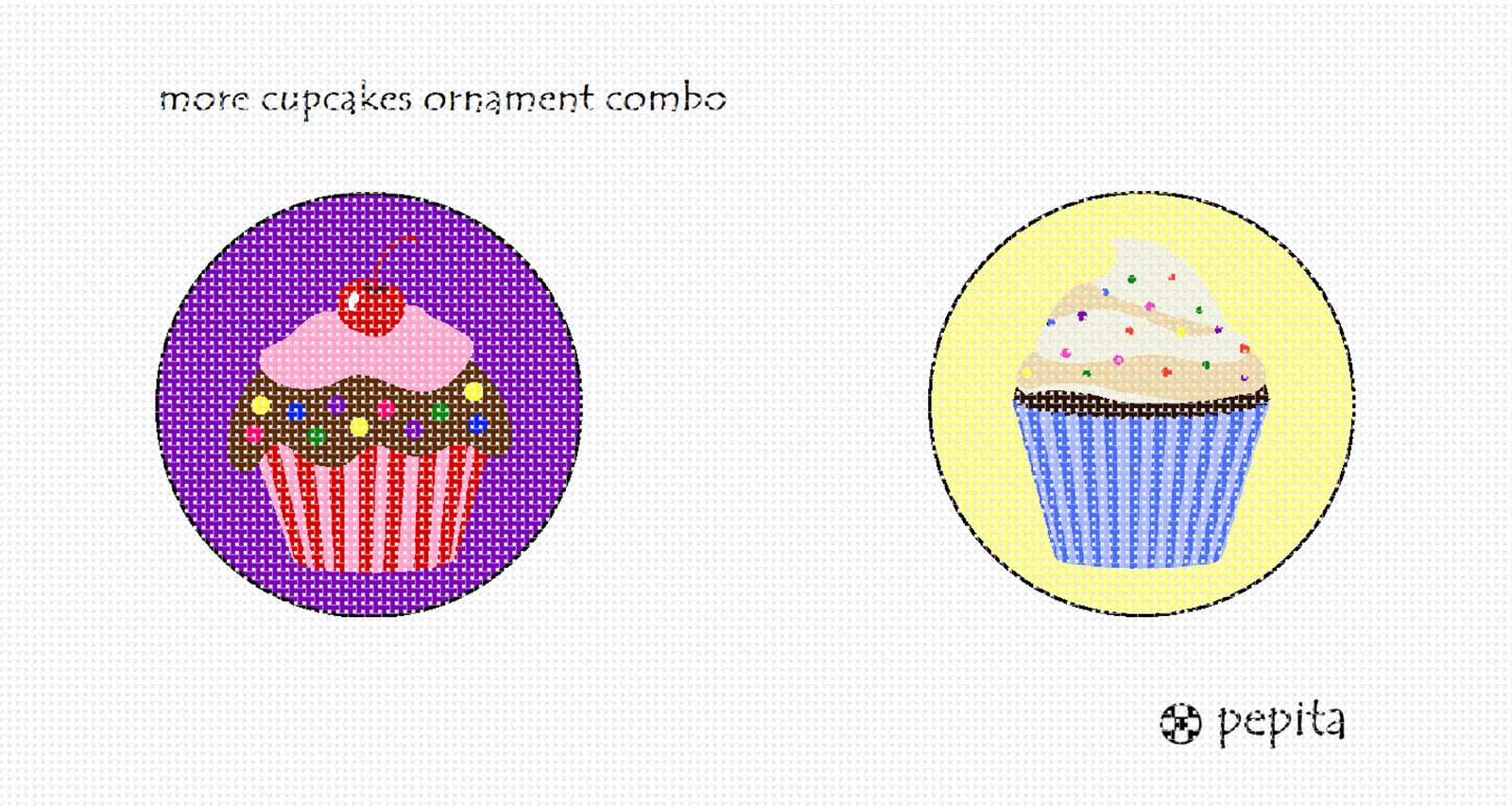 New! Pepita now designs ornaments. These are paired and sold as a set. This one has two delicious cupcakes. Stitch two for the price of one. 18 mesh