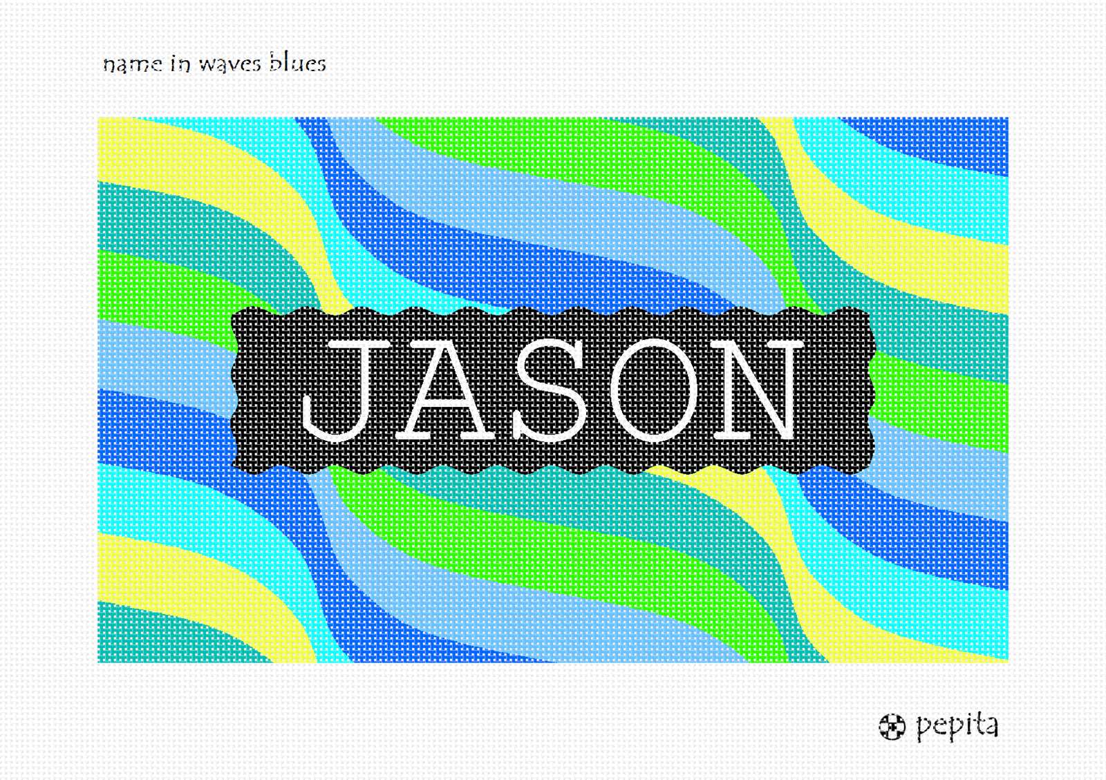 Customize this canvas with the name of your choice. These waves are splashy and colorful. Modern design with spunk! Finish as a pillow or frame it as a wall hanging. This is also available in pink and purples shades.