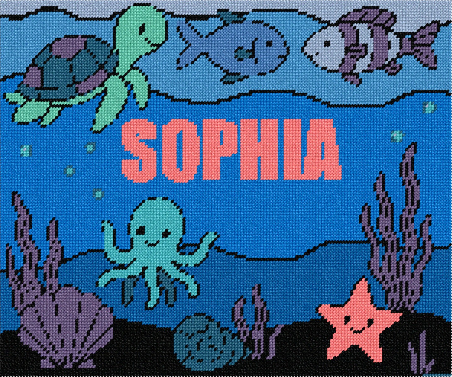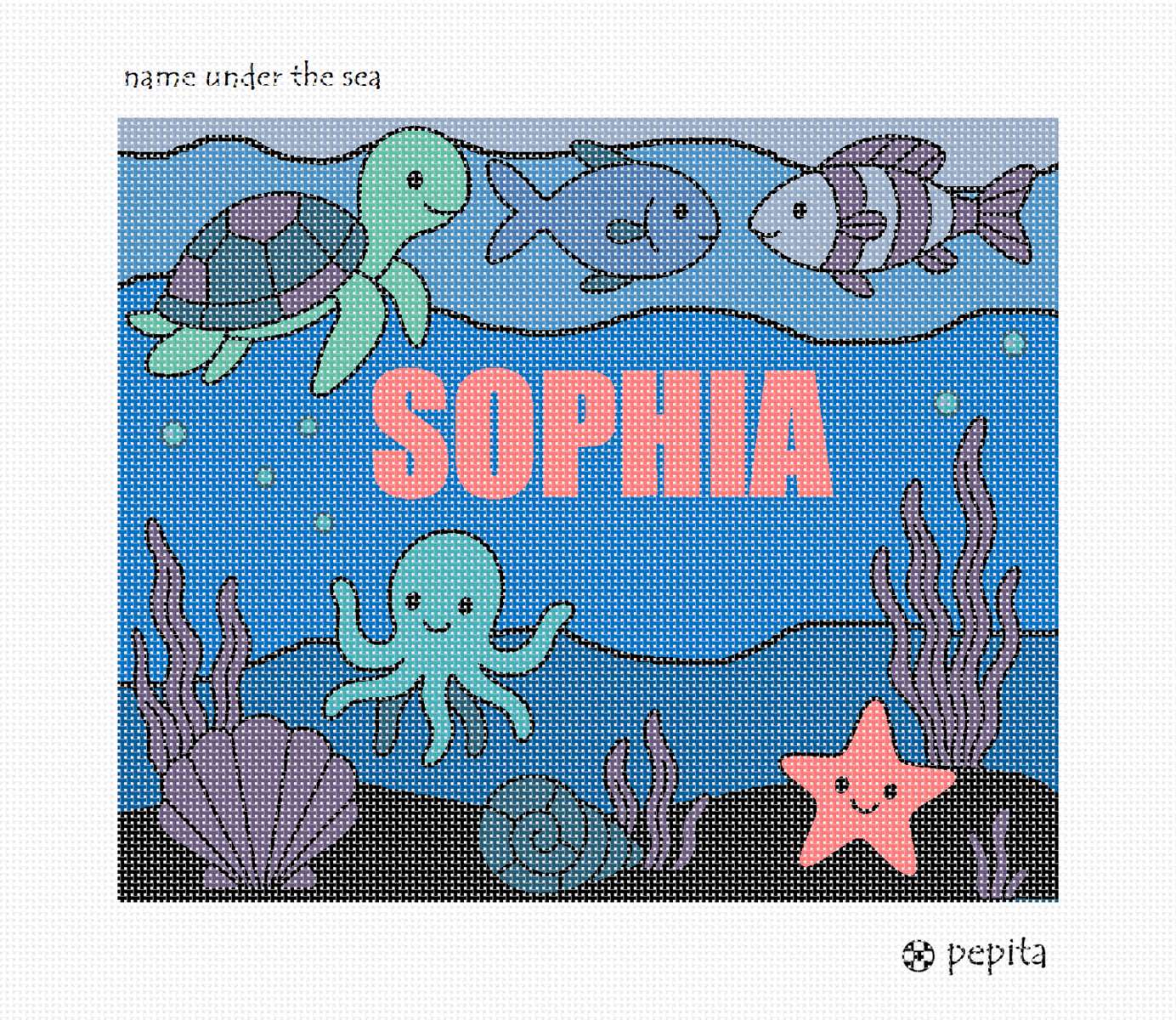 Sea creatures decorate this under the sea needlepoint.
