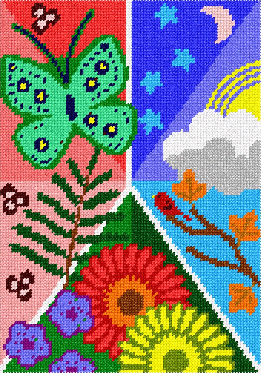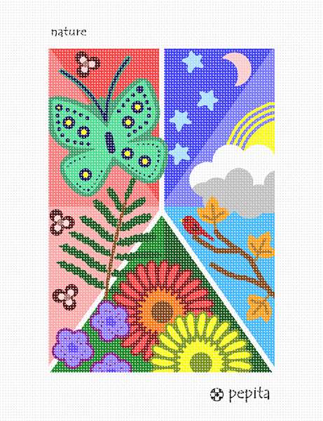 Pepita Needlepoint canvases are printed on high-quality Zweigart Mono Deluxe White canvas. The 100% cotton weave is easy on the eyes and gentle on the hands for your stitching enjoyment. Bright, vivid and fade-resistant ink allow you to easily match thread to the image on the canvas. Our proprietary printing process was developed by specialists in the fabric printing industry and we guarantee you will not find a better quality painted canvas. Pepita's line of needlepoint canvases and needlepoint kits are simply the best available on the market today. Learn more about Pepita Needlepoint.