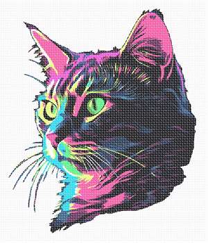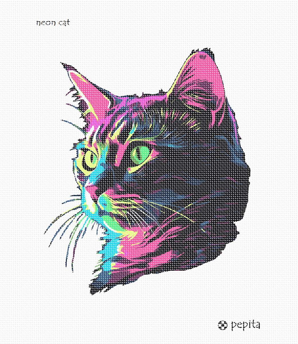 A charming cat profile in glitzy neon colors
