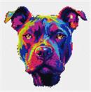 A portrait of a happy hound in glitzy colors