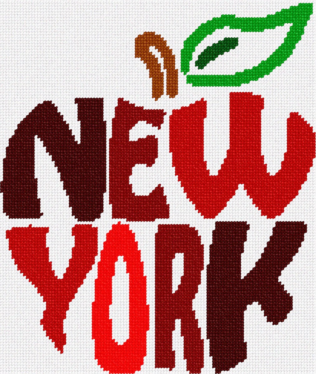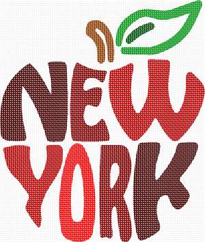 The Big Apple in needlepoint for those I Love New York fans. New York has been nicknamed the "Big Apple," although the name has no reference to the growing of apples. The nickname the "Big Apple" primarily gained relevance in the 1920s through horse racing, as reported in the New York Morning Telegraph by John J. Fitz Gerald.