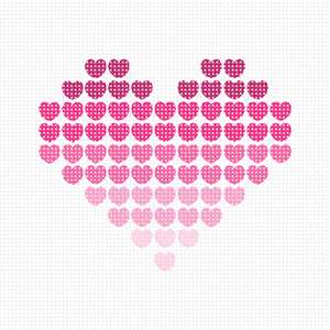 Hearts in a heart in variegated shades of pink. No one knows why the heart is associated with love. A human heart weighs between 7 and 15 ounces. Our heart beats around 100,000 times a day. Laughing is good for your heart. A “broken heart” can feel like a heart attack.