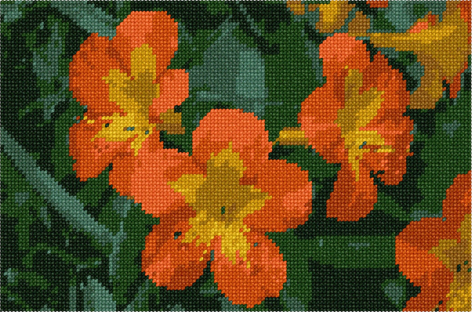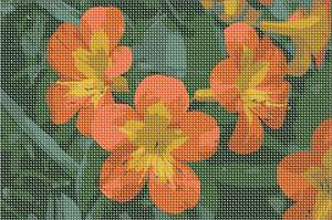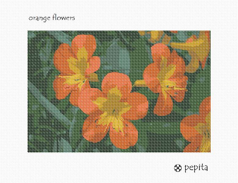 Orange and yellow flowers so vivid and fresh you can almost touch their velvety petals. Flowers and floral design are among the most popular needlepoint designs. People have been stitching flowers and floral motifs for hundreds of years. Flowers are bright and pleasant, and most have underlying meanings to them.