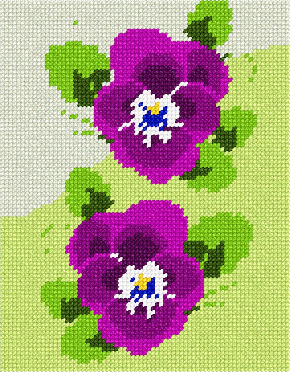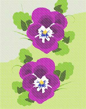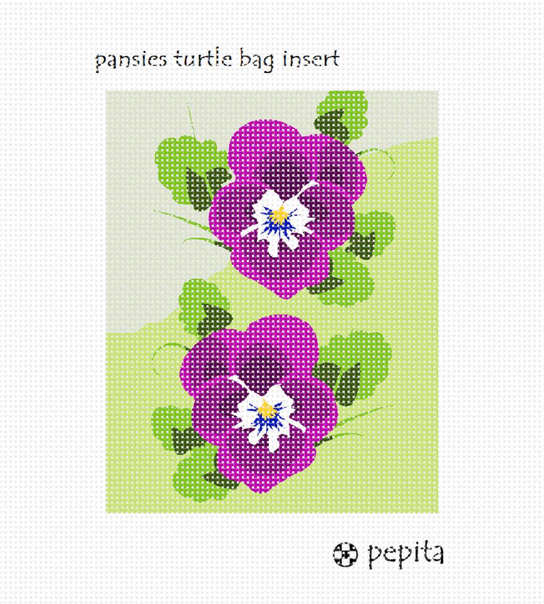 Stitch a shell for your new turtle bag. Turtle bags are tote bags that come with a window for interchangeable designs. This one is a coordinate to the seagrass turtle bag. These pansies can also be stitched as a regular beginner needlepoint project. It measures 5.5 X 7, so adjust the stitching area to 5 X 7 and frame with a ready made frame.
