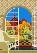 A lush garden is seen through an elegant patio door. Wicket furniture, a polished floor, and tasteful wallpaper decorate the scene. This design coordinates with others in our Home Sweet Home series. A house is made of walls and beams, a home is built with love and dreams. ...