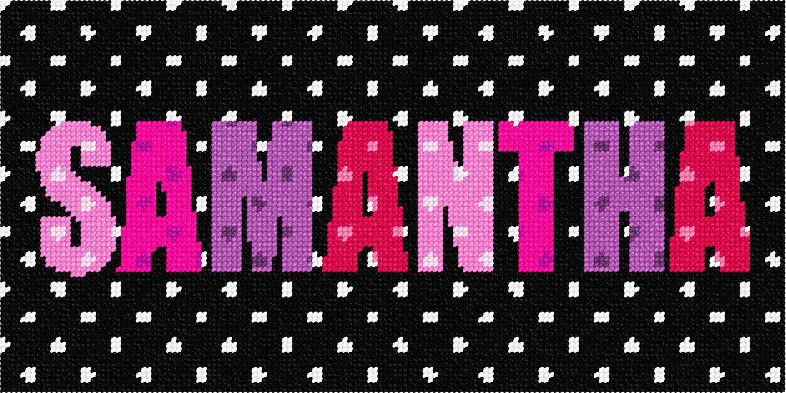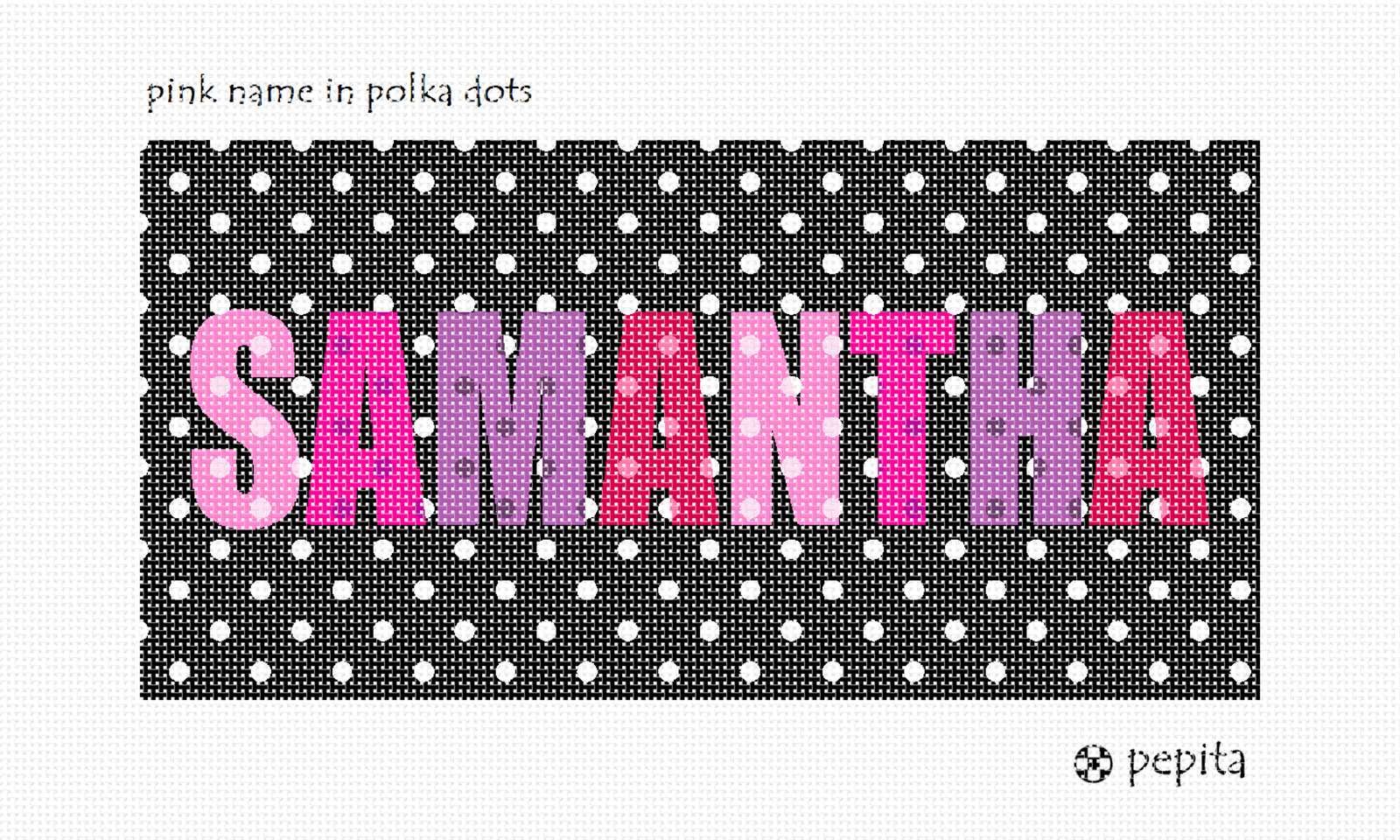 Customize your name in pinks and polka dots. This size fits a name that is up to eight letters. Stitch a letter a day for a quick finish.