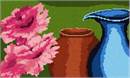 Flowers with a pottery pot and pitcher. Pottery is made by forming a clay body into objects of a required shape and heating them to high temperatures in a kiln which removes all the water from the clay , which induces reactions that lead to permanent changes including increasing their strength and hardening and setting their shape.