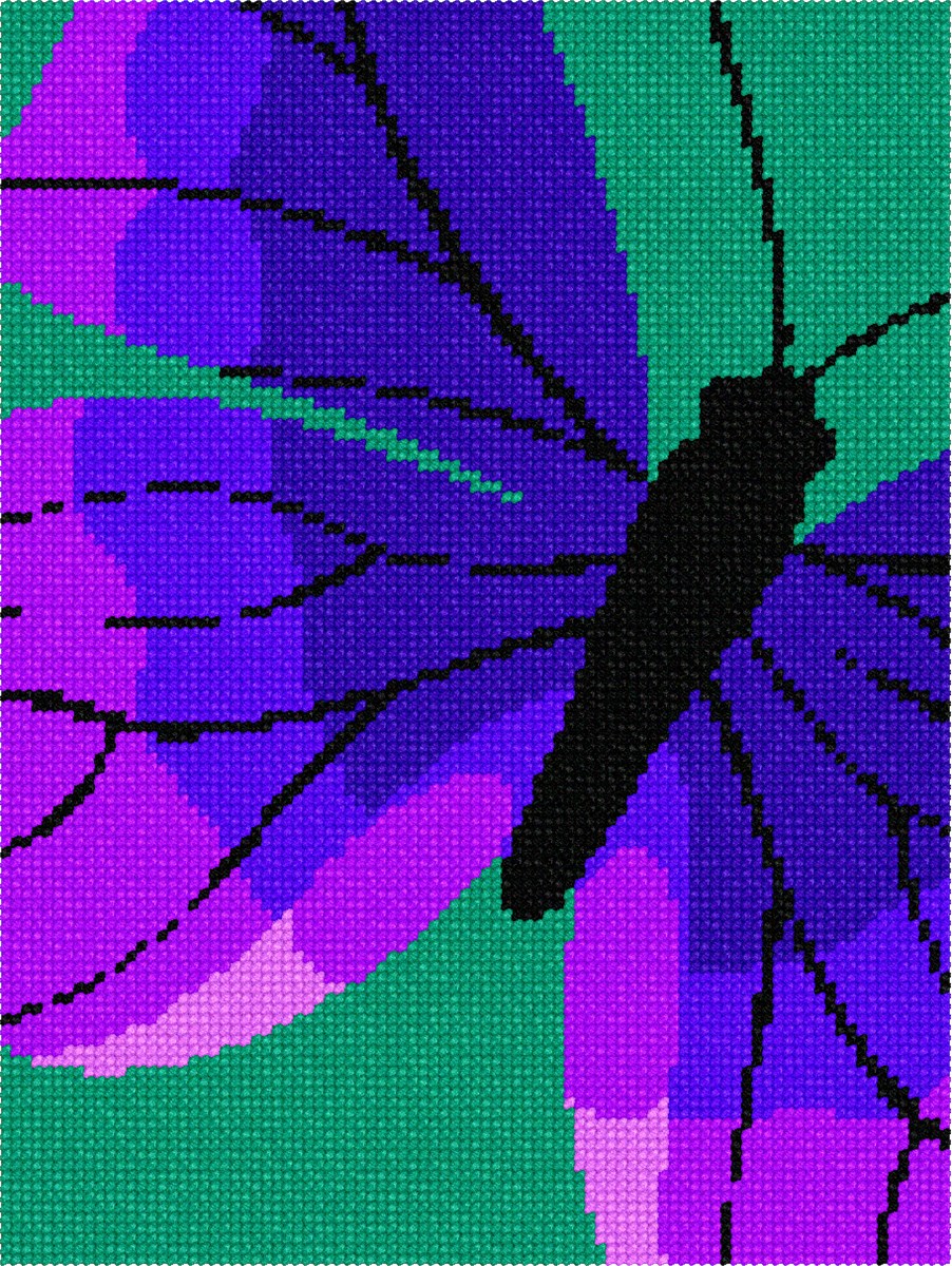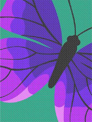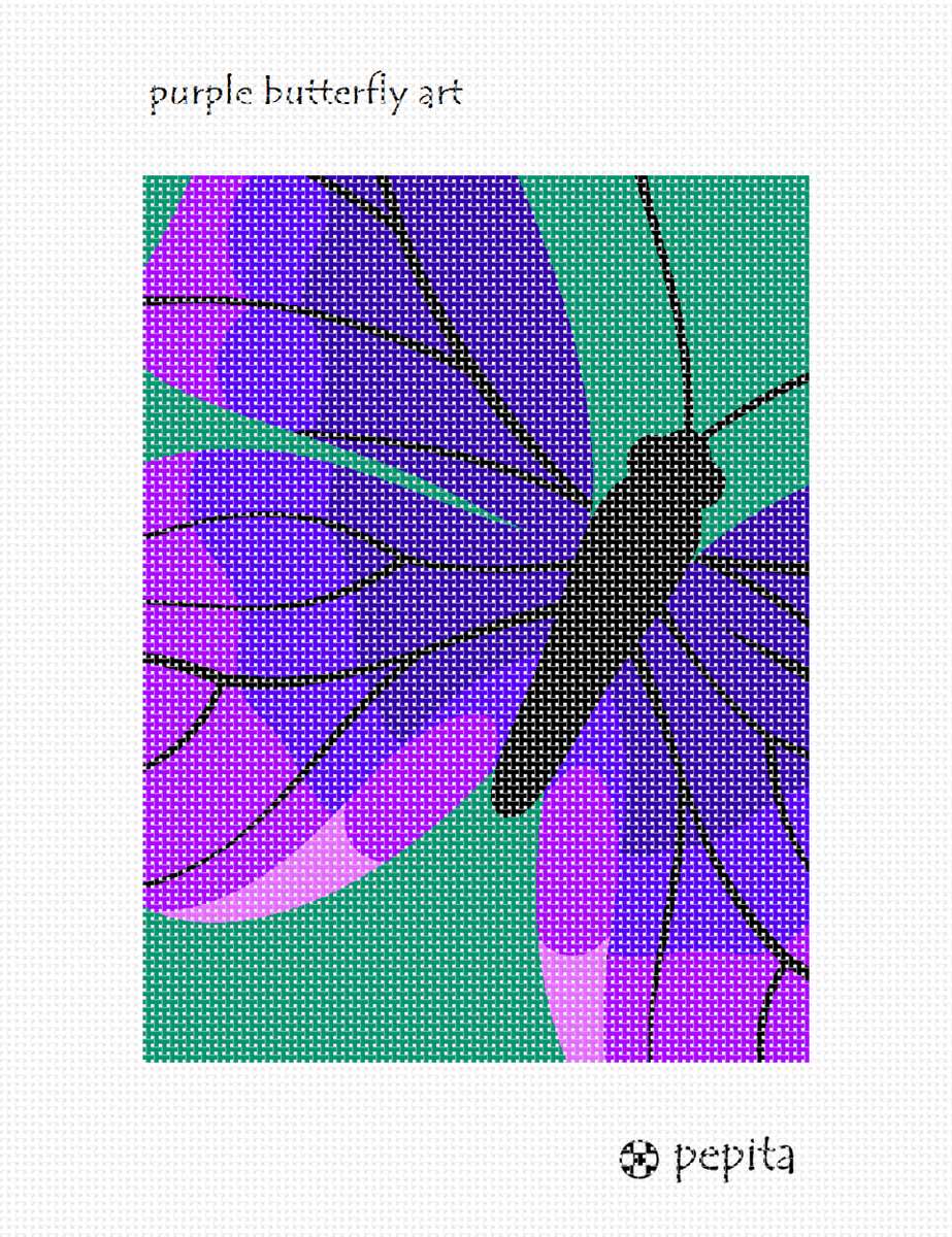 Vivid butterfly in bold shades of purple. There are almost 20,000 butterfly species. Butterflies only live for a few weeks. Butterfly wings help them against predators. This design is available in other colors too.