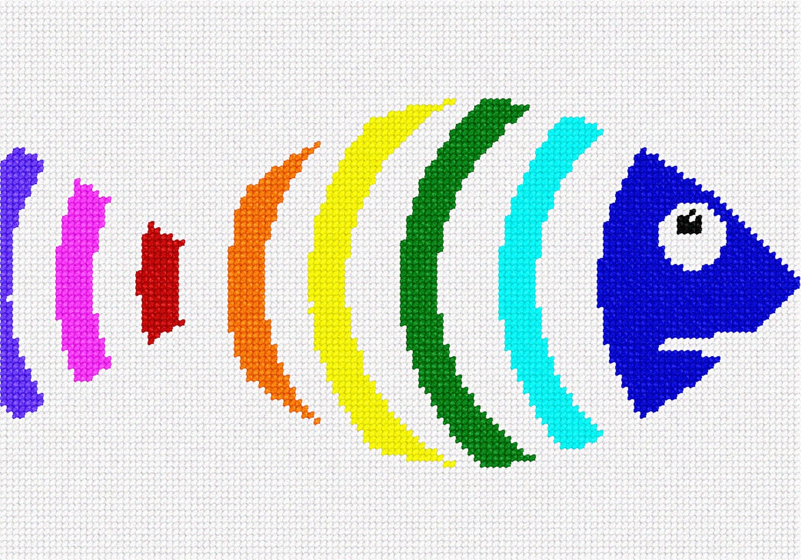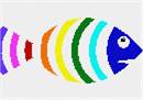 A fish in colorful rainbow stripes