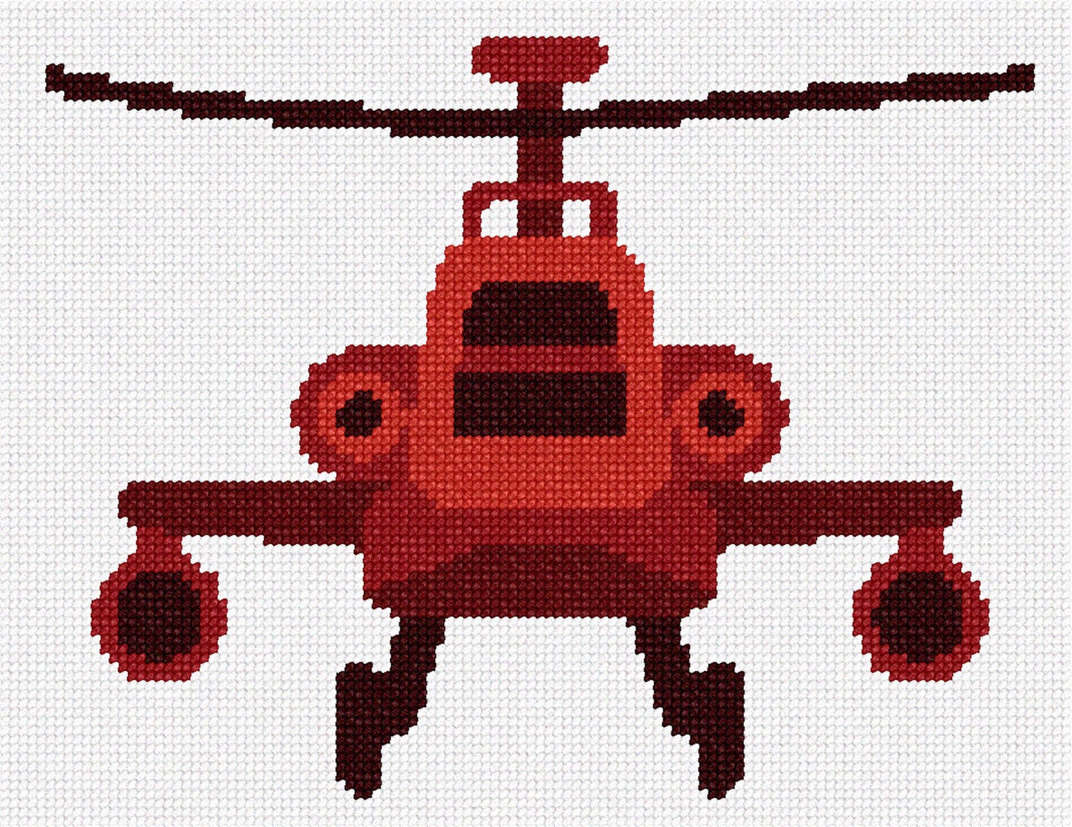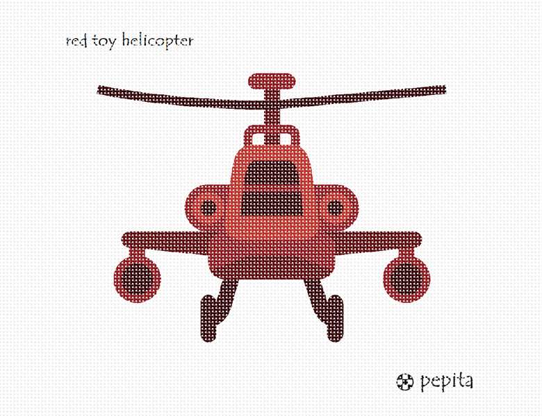 A helicopter toy in needlepoint. Stitch for a boy's room, or gift this simple project to a beginner needleponiter.