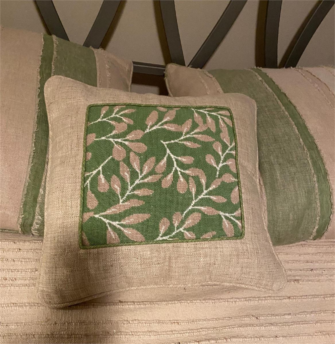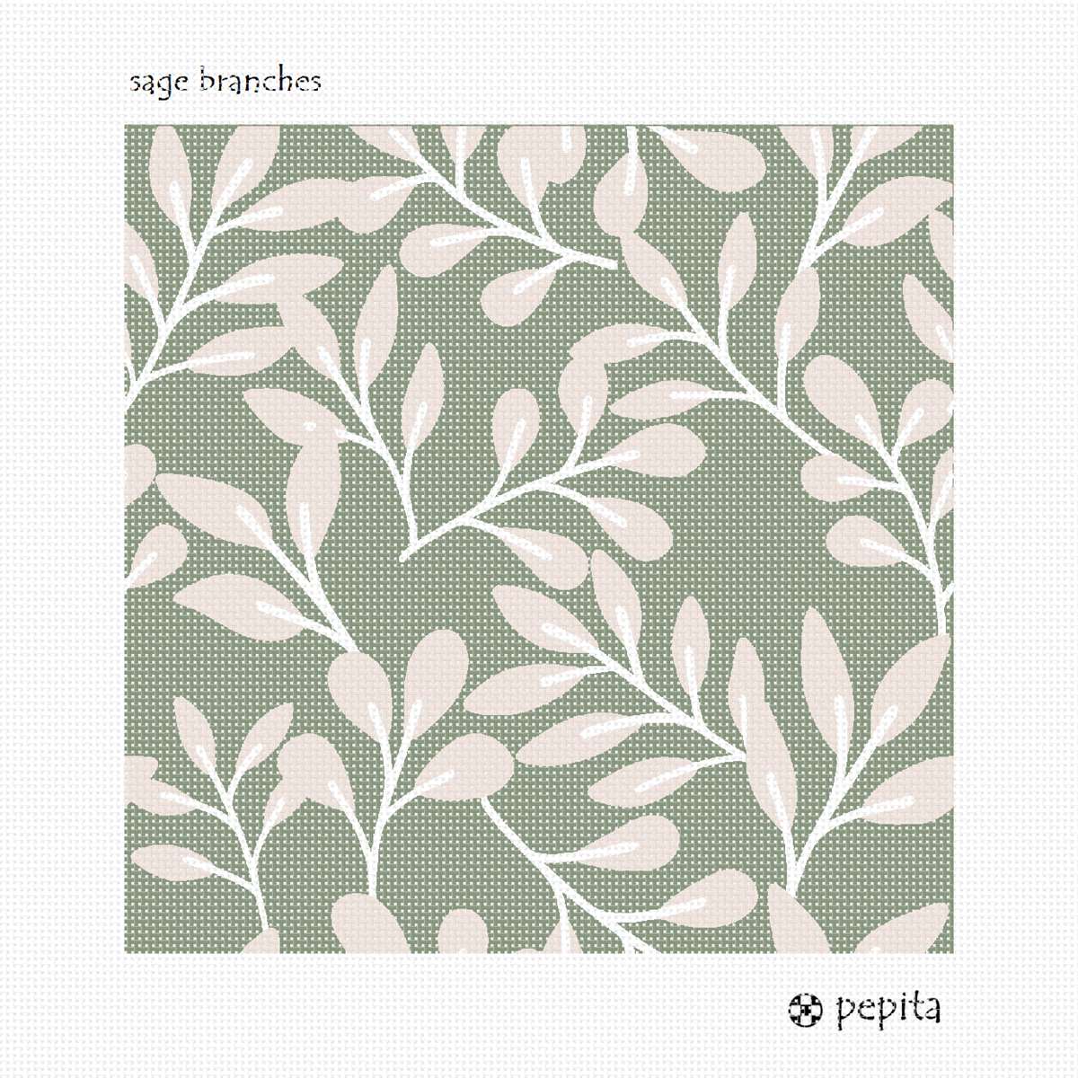 Easy and versatile, this pattern coordinates with Sage Branches 2, and Sage Leaves 1 and 2. These make perfect needlepoint pillows for any neutral color couch or bed. This timeless pattern works for every season. Mix and match for creative home decor.