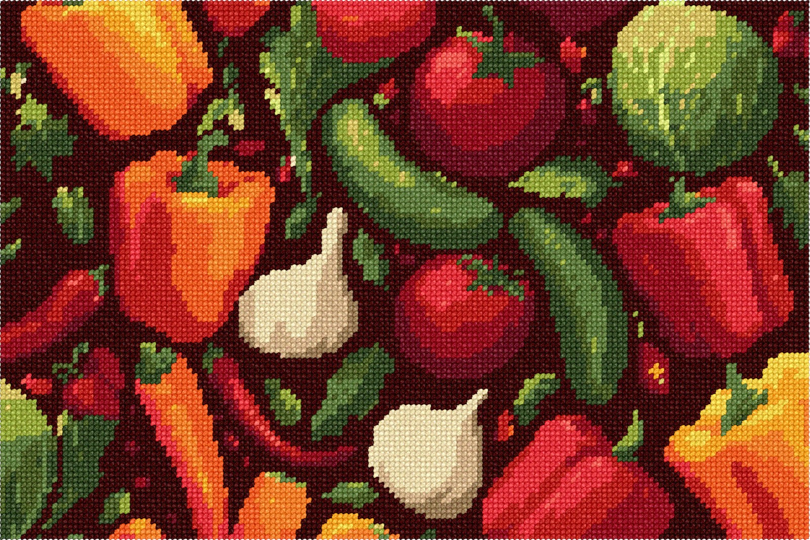 Salad vegetables in needlepoint