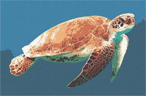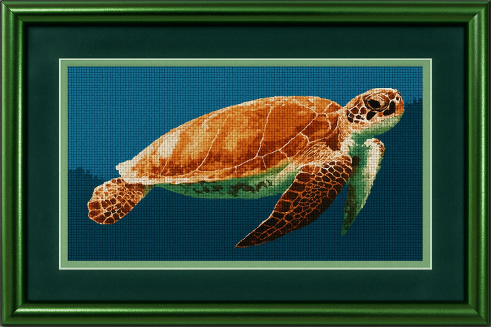 A beautiful sea turtle, swimming peacefully in clear blue waters.