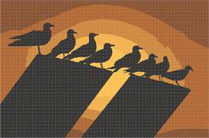 Seagulls are watching and scanning their surroundings searching for a great catch. Why are seagulls called seagulls when they don't live by the sea? Because originally they were found by and around the sea. The thing is, the Seagull is one of the creatures that has done very well living in close proximity with humans. A silhouette (English: /ˌsɪluˈɛt/ SIL-oo-ET, French: [silwɛt]) is the image of a person, animal, object or scene represented as a solid shape of a single color, usually black, with its edges matching the outline of the subject.