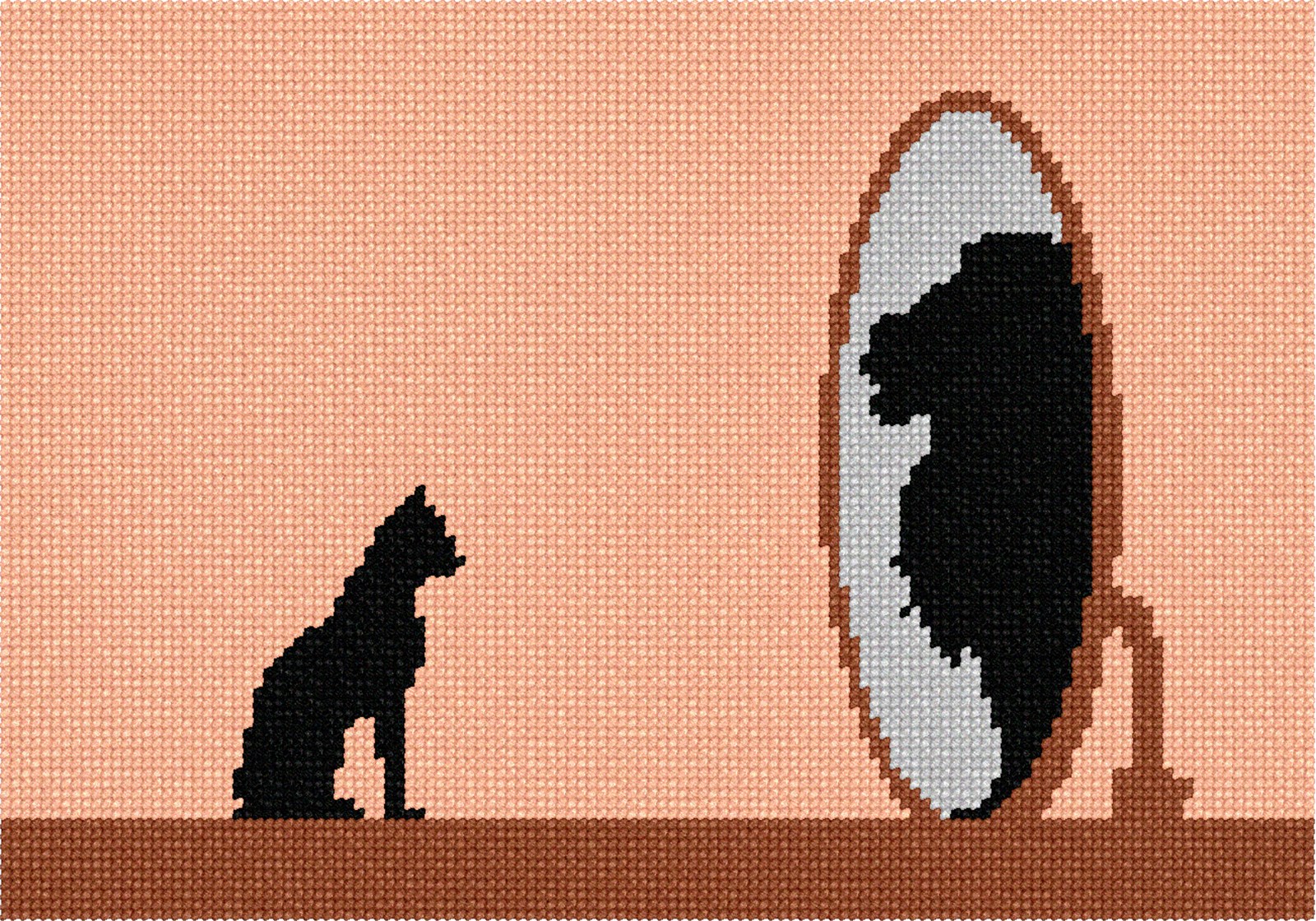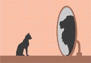 So many of us need a healthy dose of self confidence once in a while. This will bring a chuckle to anyone who stitches it. As the cat looks for his reflection in the mirror, he sees a lion, the king of the jungle. This is whimsical and powerful at the same time - and a conversation piece.