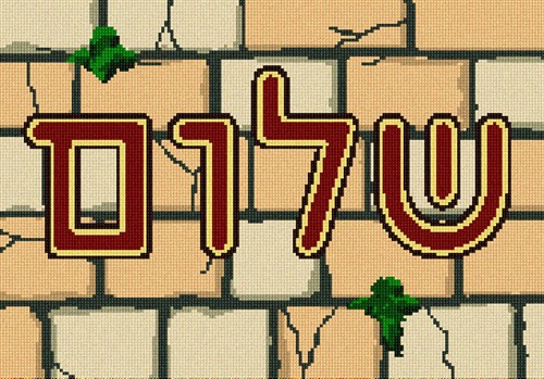 The Hebrew word for peace - shalom - against a backdrop of the Western Wall. The Western Wall, or “Wailing Wall”, is the most religious site in the world for the Jewish people. Located in the Old City of Jerusalem, it is the western support wall of the Temple Mount. Thousands of people journey to the wall every year to visit and recite prayers.