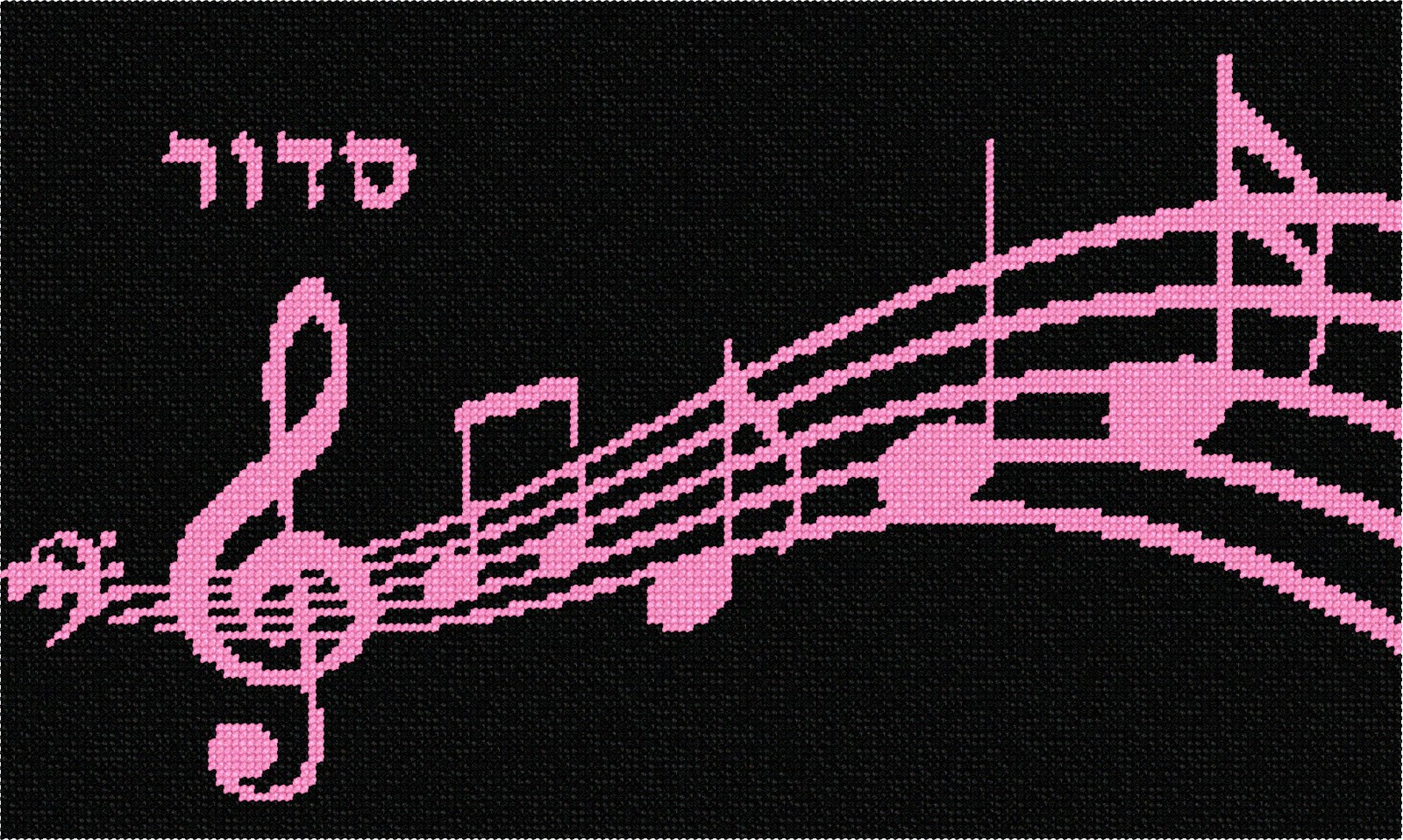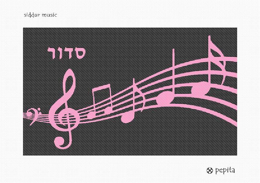 Siddur design with music notes. Many mothers and grandmothers stitch tefillin and tallit bags for the boys. They stitch siddur covers for the girls. Many schools have siddur ceremonies where the siddur cover is custom made.