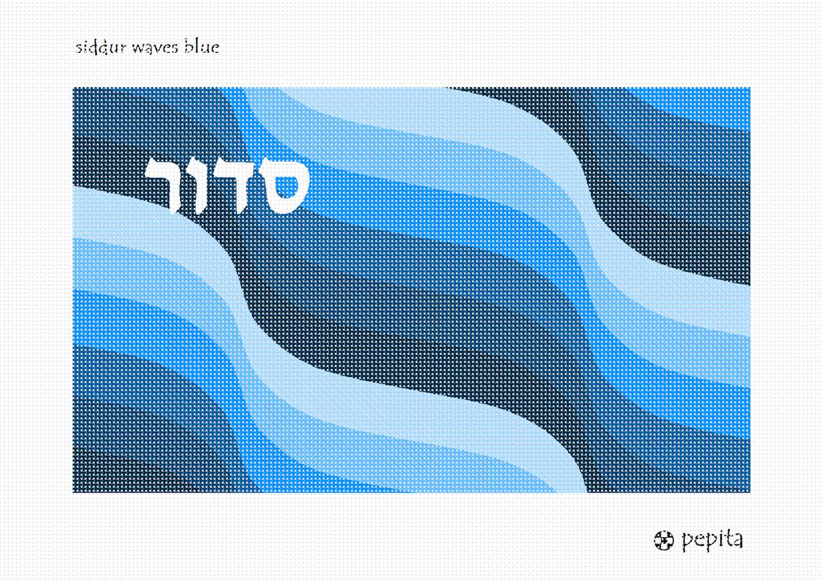 Siddur cover in blue wave pattern. See matching tallit bag. Many mothers and grandmothers stitch tefillin and tallit bags for the boys. They stitch siddur covers for the girls. Many schools have siddur ceremonies where the siddur cover is custom made.