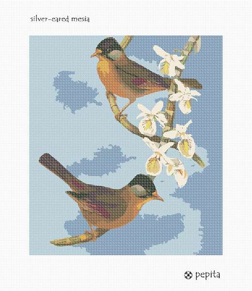 The Silver-eared Mesia (Leiothrix argentauris) is a species of bird in the Timaliidae family. It is found in Bangladesh, Bhutan, Cambodia, China, India, Indonesia, Laos, Malaysia, Myanmar, Thailand, and Vietnam. This image is based on a painting by John Gould.
