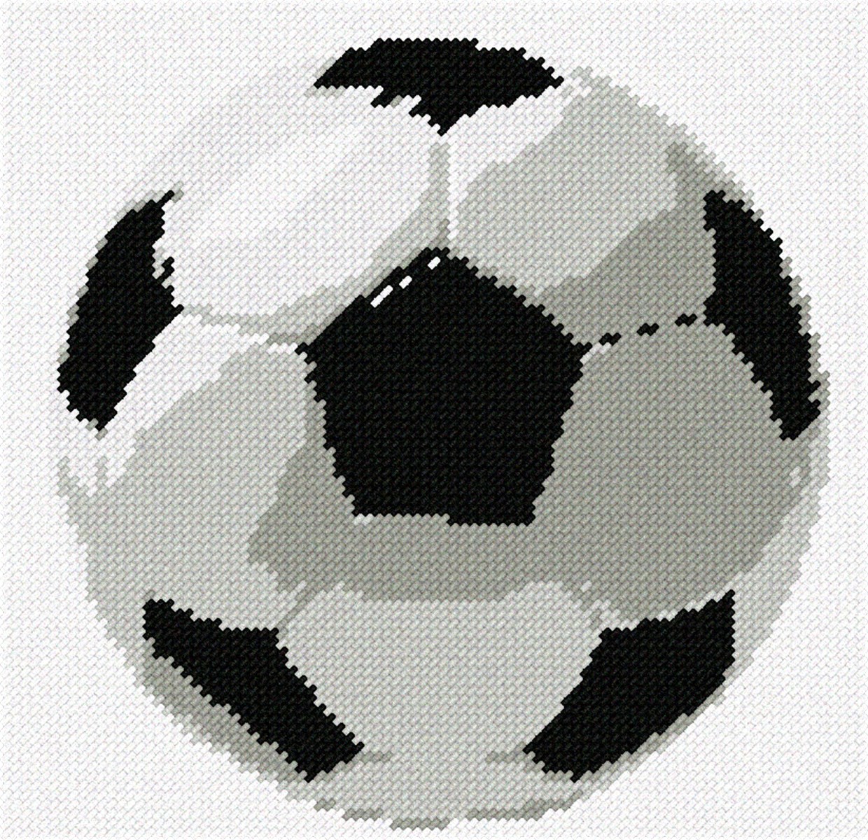 Also known as football or association football, soccer is played by 250 million players in over 200 countries, making it the world's most popular sport. The game is played using a spherical ball with a 28-inch circumference. It is depicted on this canvas with the familiar black and white truncated icosahedron pattern.