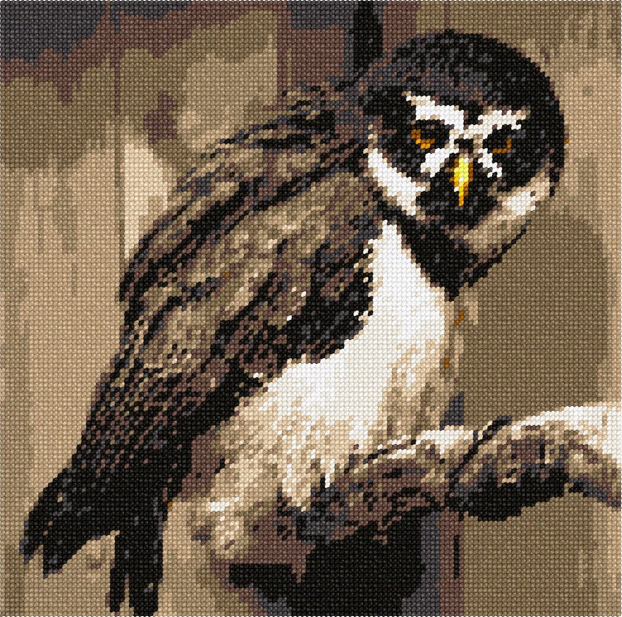 The Spectacled Owl is a medium-sized to large owl with a rounded head with no ear-tufts. It has a dark face with contrasting 'spectacles' made up of white eyebrows and other white streaking between the eyes and on the cheeks. With very few predators, this species can live up to 35 years in the wild. They are known to live for 25 to 30 years in captivity.
