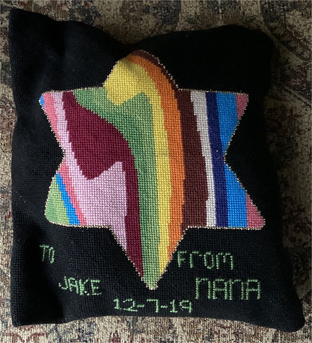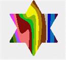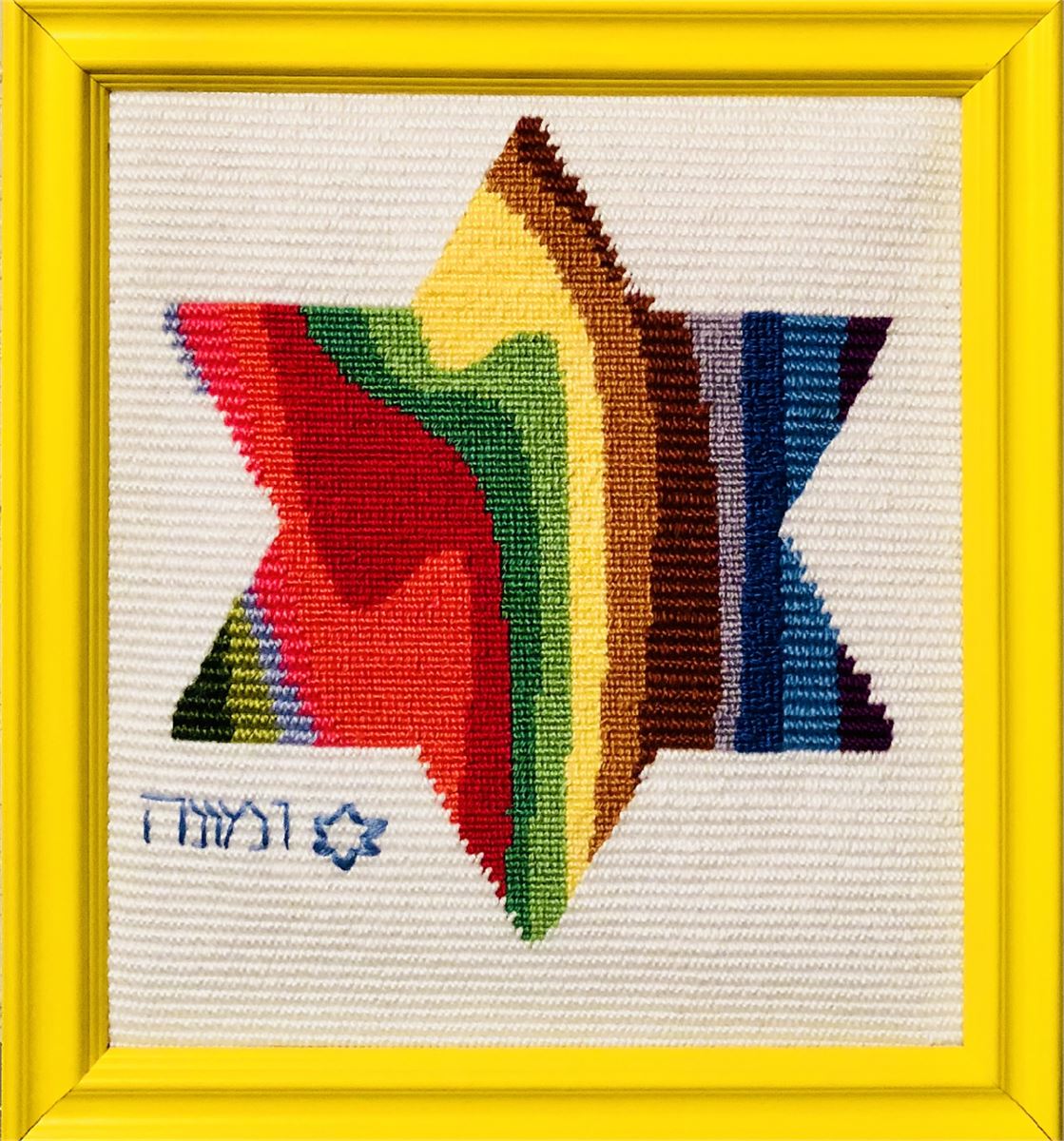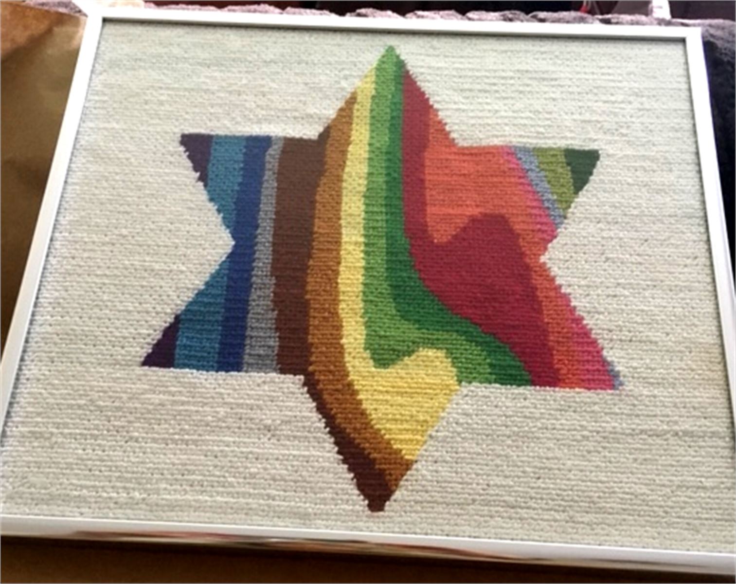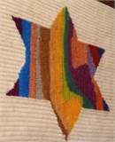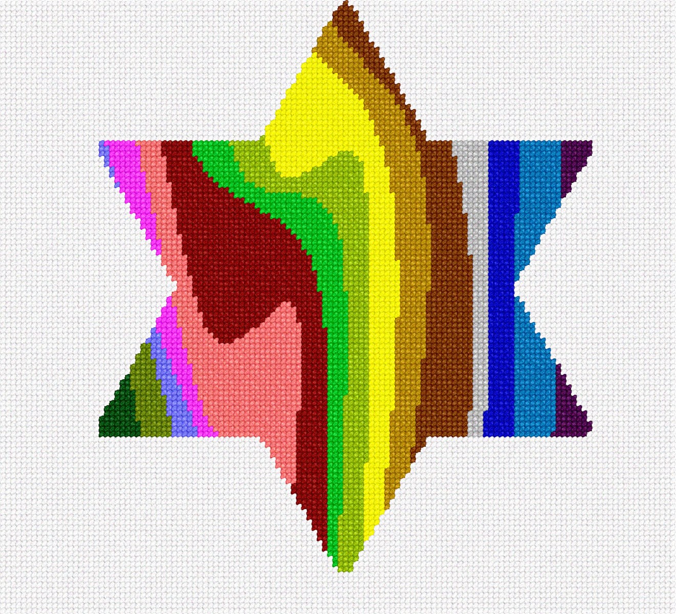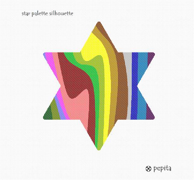 The shape of a star filled with colorful stripes. There are many designs in our palette silhouette series. This star is adorable and perfect for a beginner. Purchase as a kit, or buy just the plain canvas if you have many color threads in your stash.