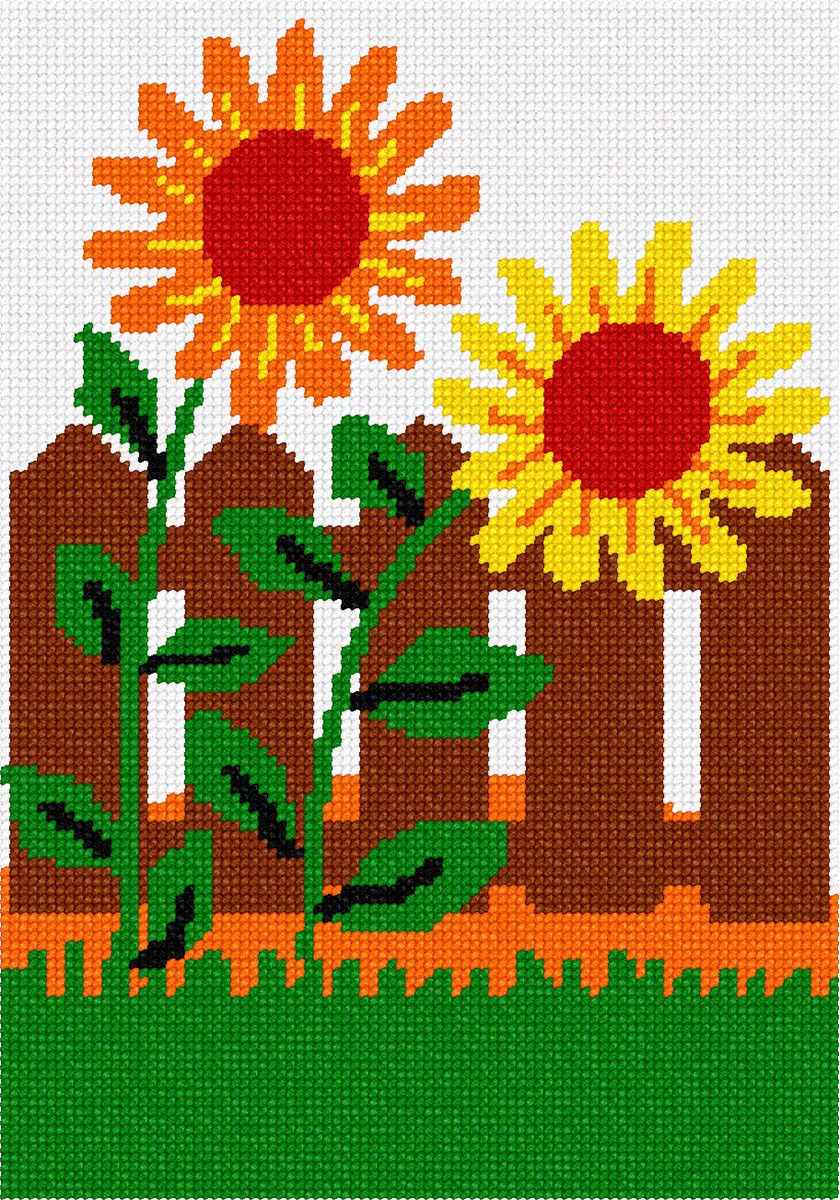These colorful sunflowers stand pretty against a picket fence backdrop. It makes for a wonderful beginner's project. It comes with a wood-cutout that you stick on after it is finished. Buy for yourself or someone else loads of fun and accomplishment.