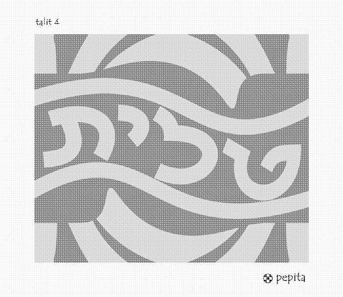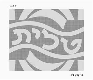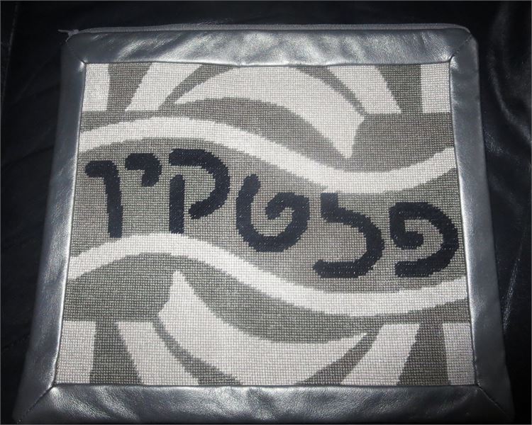Tallit bag with a funky stripe design. You stitch the front. After it is completely stitched, it is sent to a professional finisher who adds a lining, back, and matching zipper.