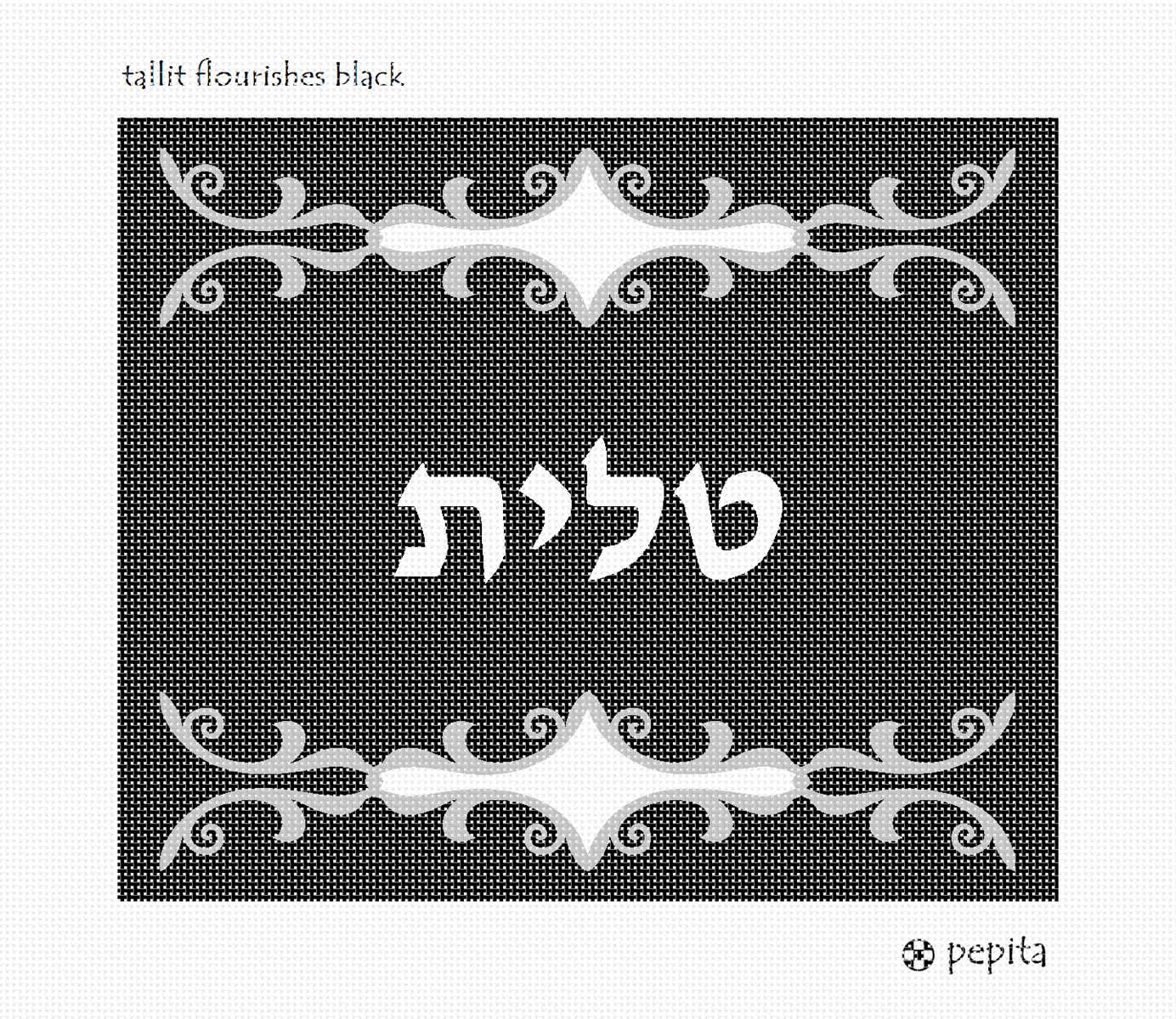 Tallit Bag with upper and lower flourishes. . You stitch the front. After it is completely stitched, it is sent to a professional finisher who adds a lining, back, and matching zipper.