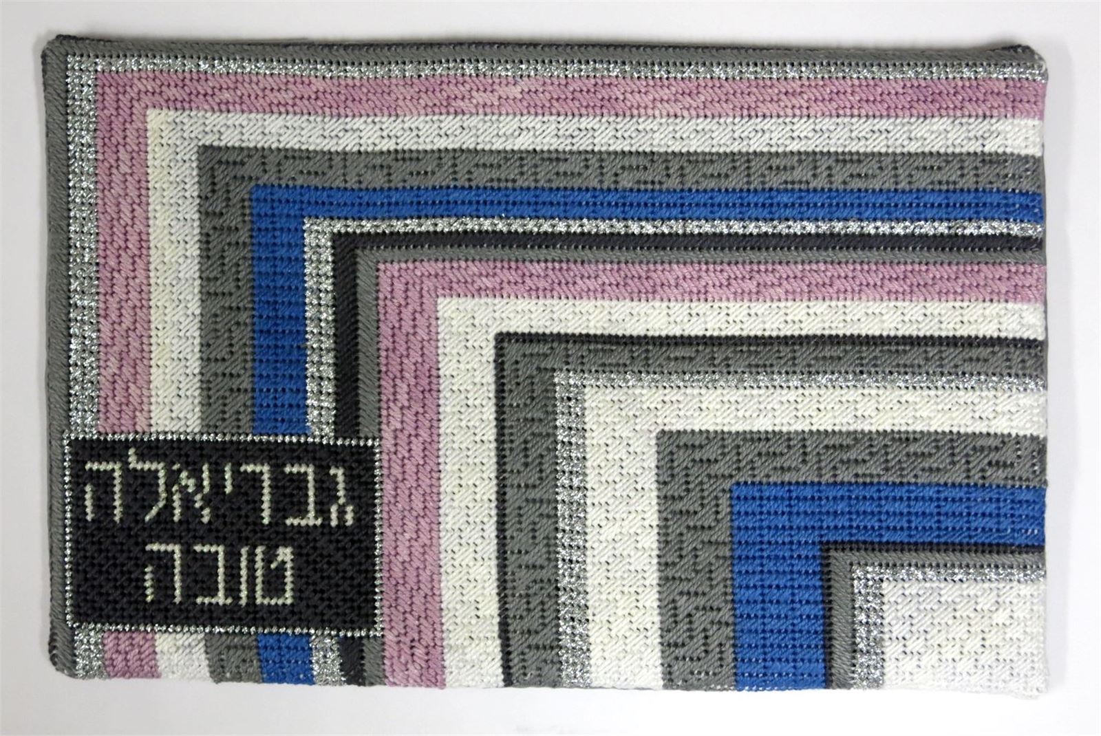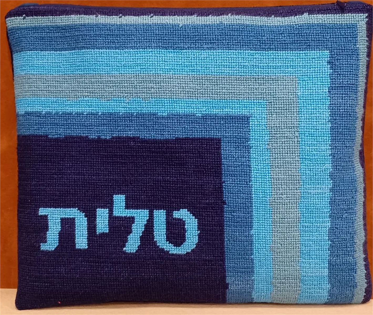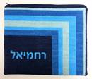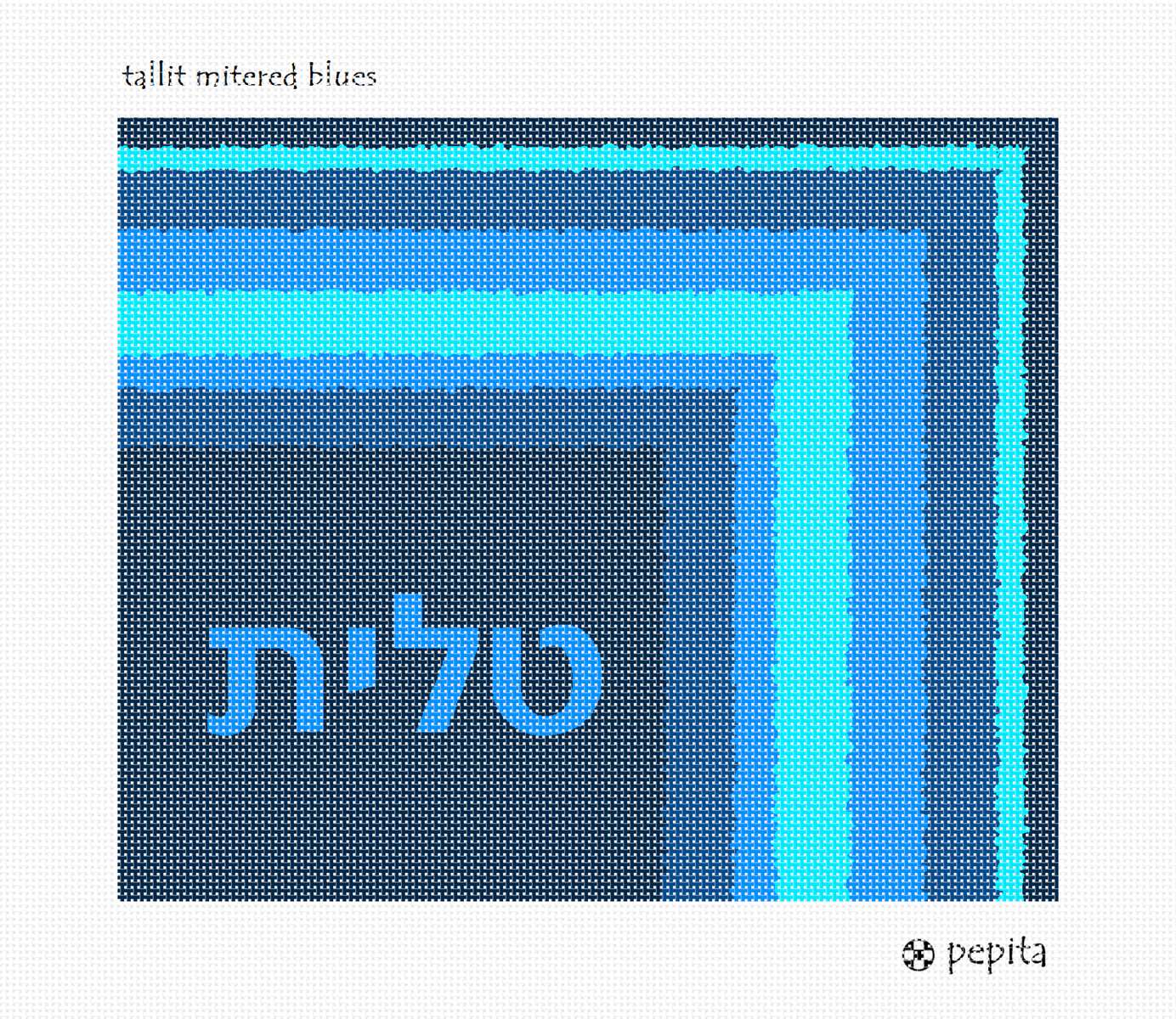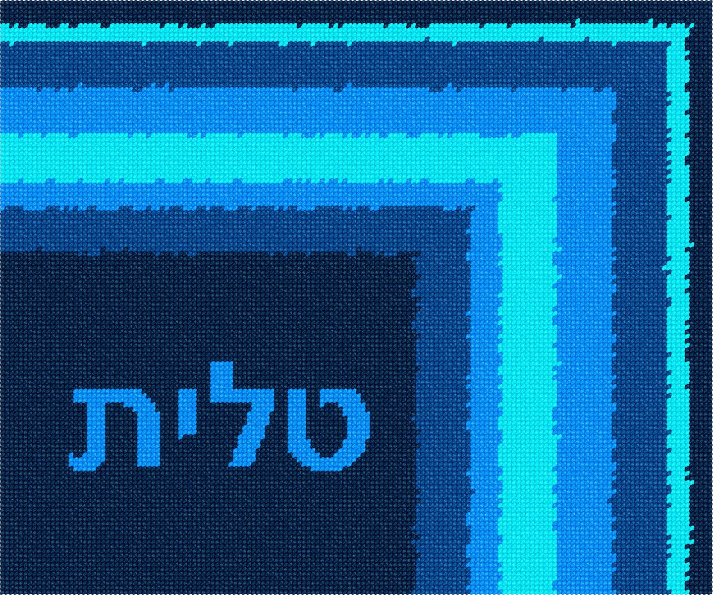 Modern tallit design with mitered corner in bright shades of blue