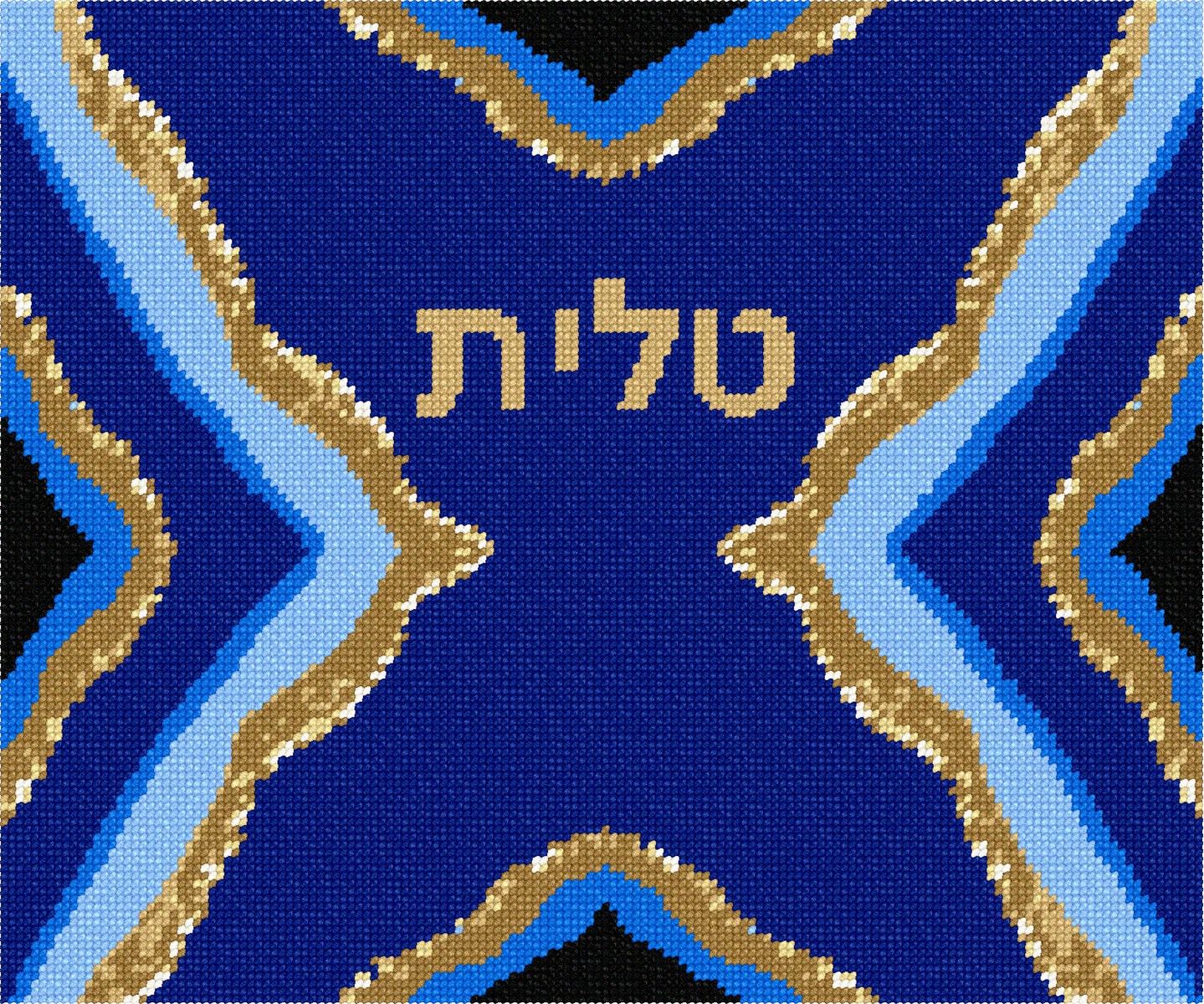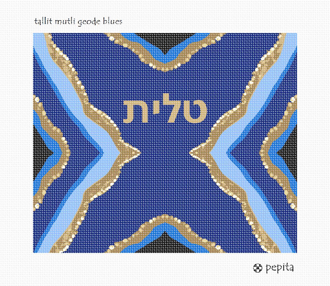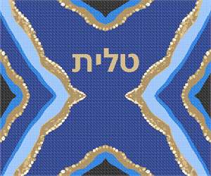 A geode is a stone having a cavity lined with crystals or mineral matter. Most geodes contain clear quartz crystals. Geodes are found all over the world especially in desert regions.This summer I experimented with resin art to create geode looks on glass. That inspired me to design tefillin, tallit, and challah covers with geode characteristics. This one is a collage of geode patterns.