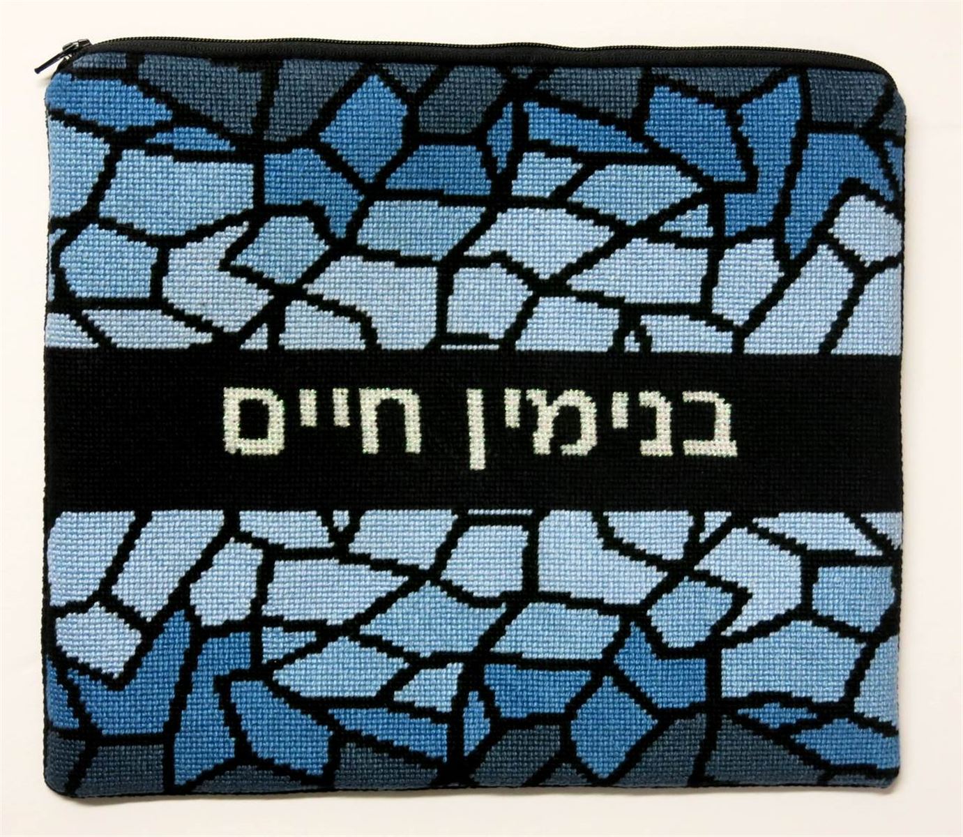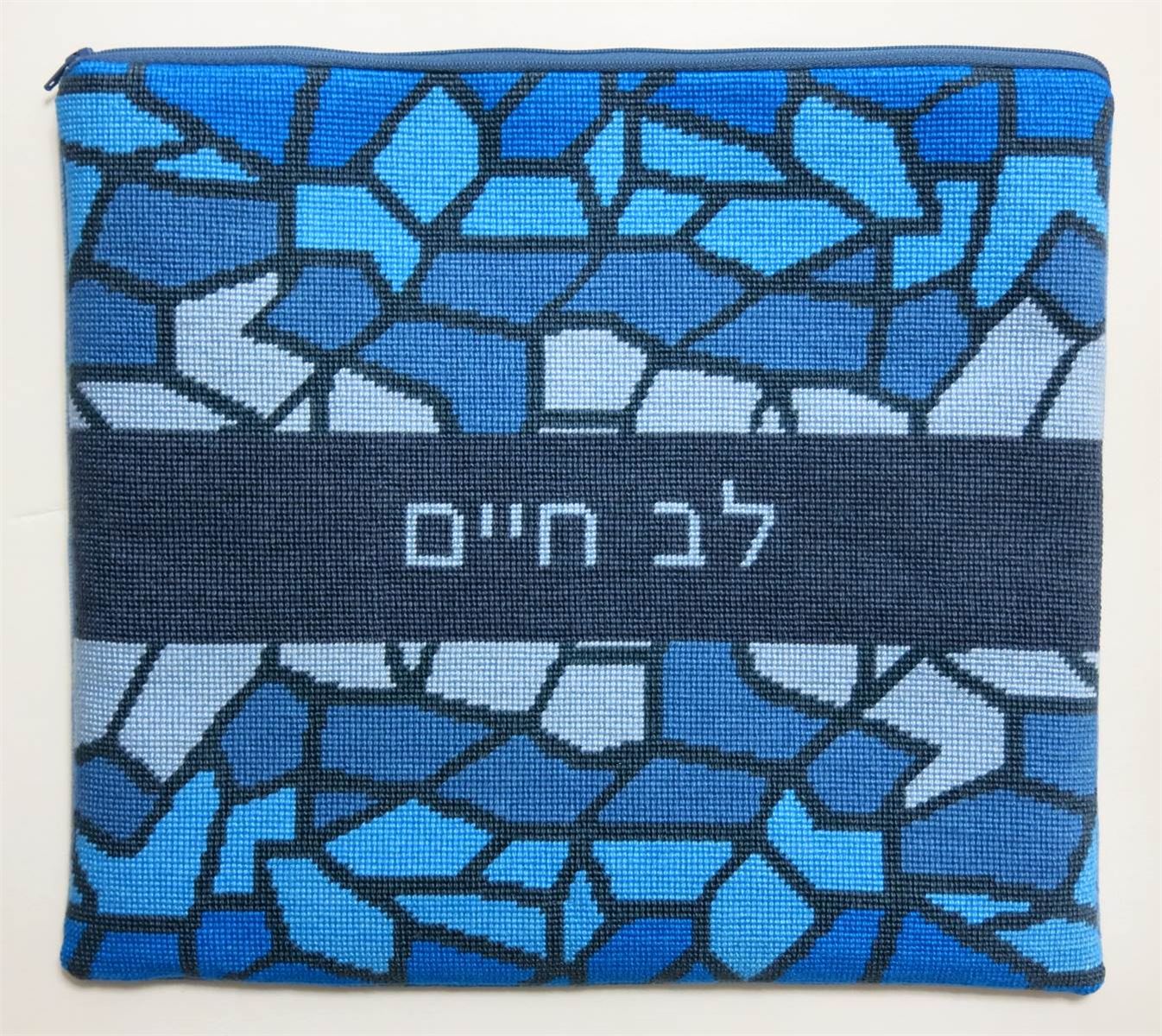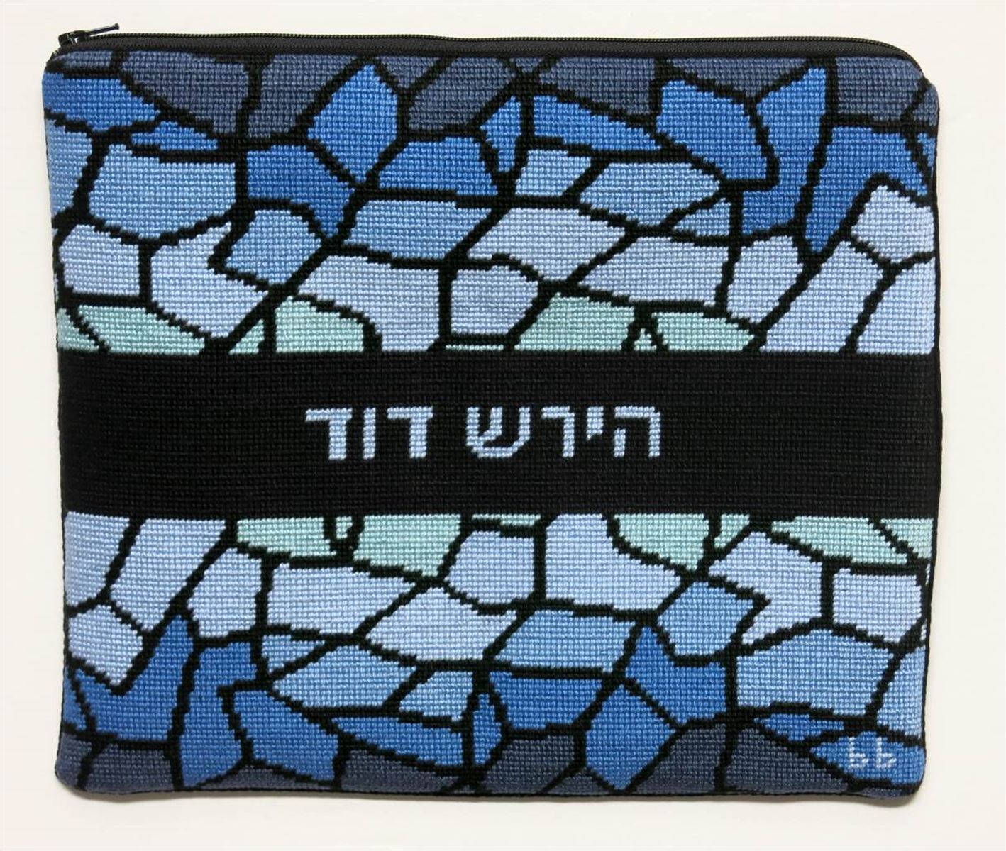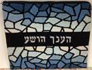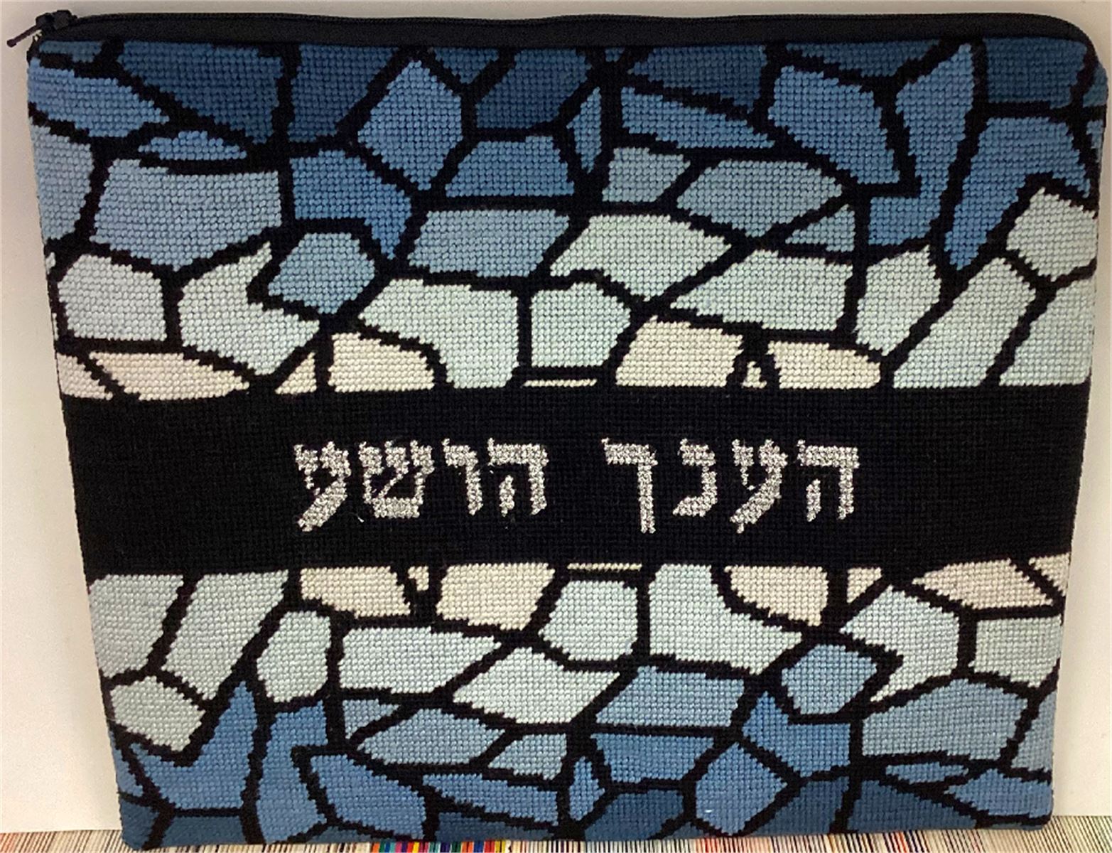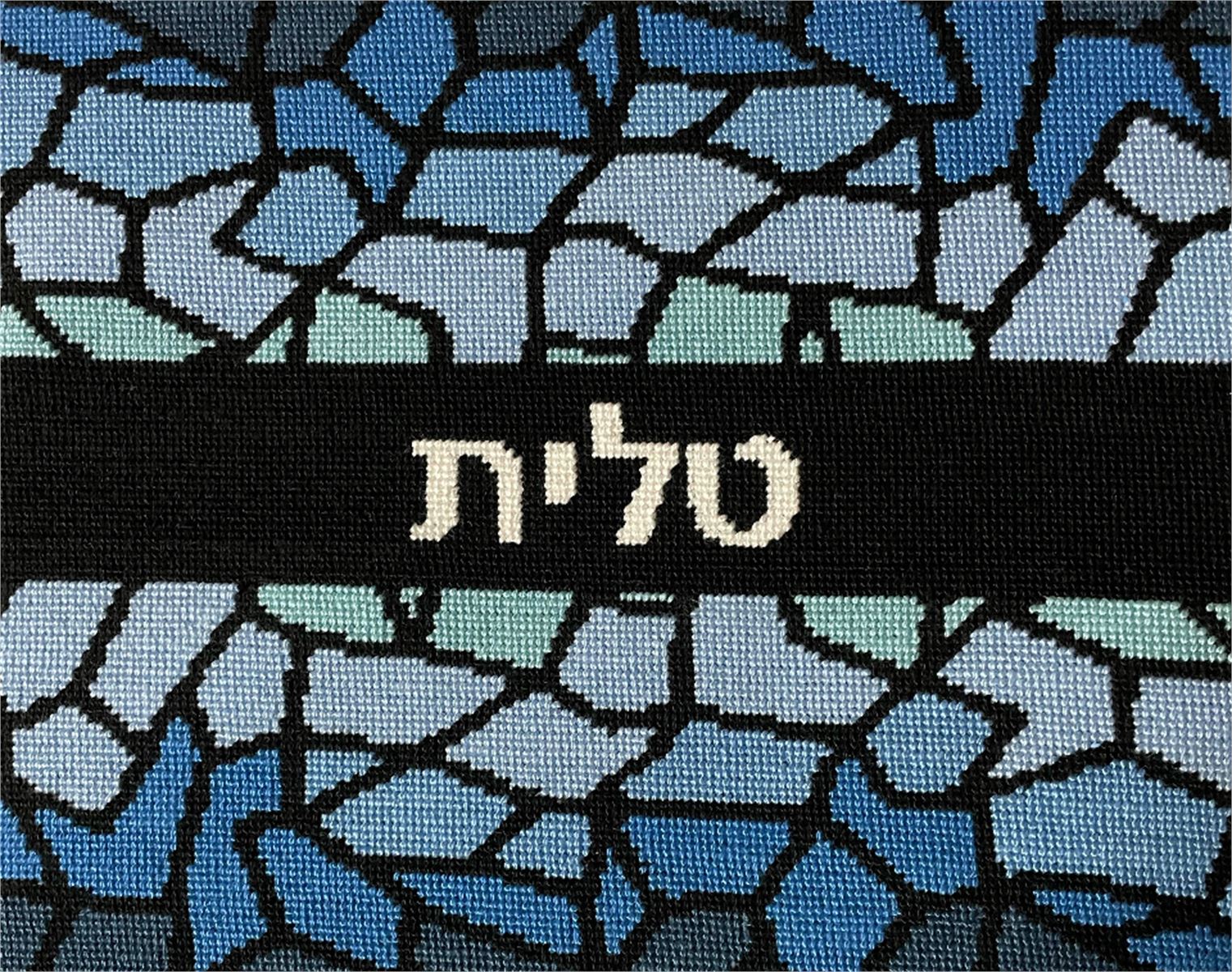 This design has a matching needlepoint tefillin bag and kippa that are sold separately. Stained glass design has been around for ages. It is very popular in religious items. The making of stained-glass has hardly changed since the 12th century. A stained-glass window consists of pieces of colored glass held together in a latticed web of lead. The glass has previously had details of faces, hands and drapery painted and fired on to it in black or brown paint. About the year 1300, yellow stain was discovered, This had the ability to turn white glass yellow or blue glass green, and was extremely useful in the highlighting of hair, haloes and crowns.