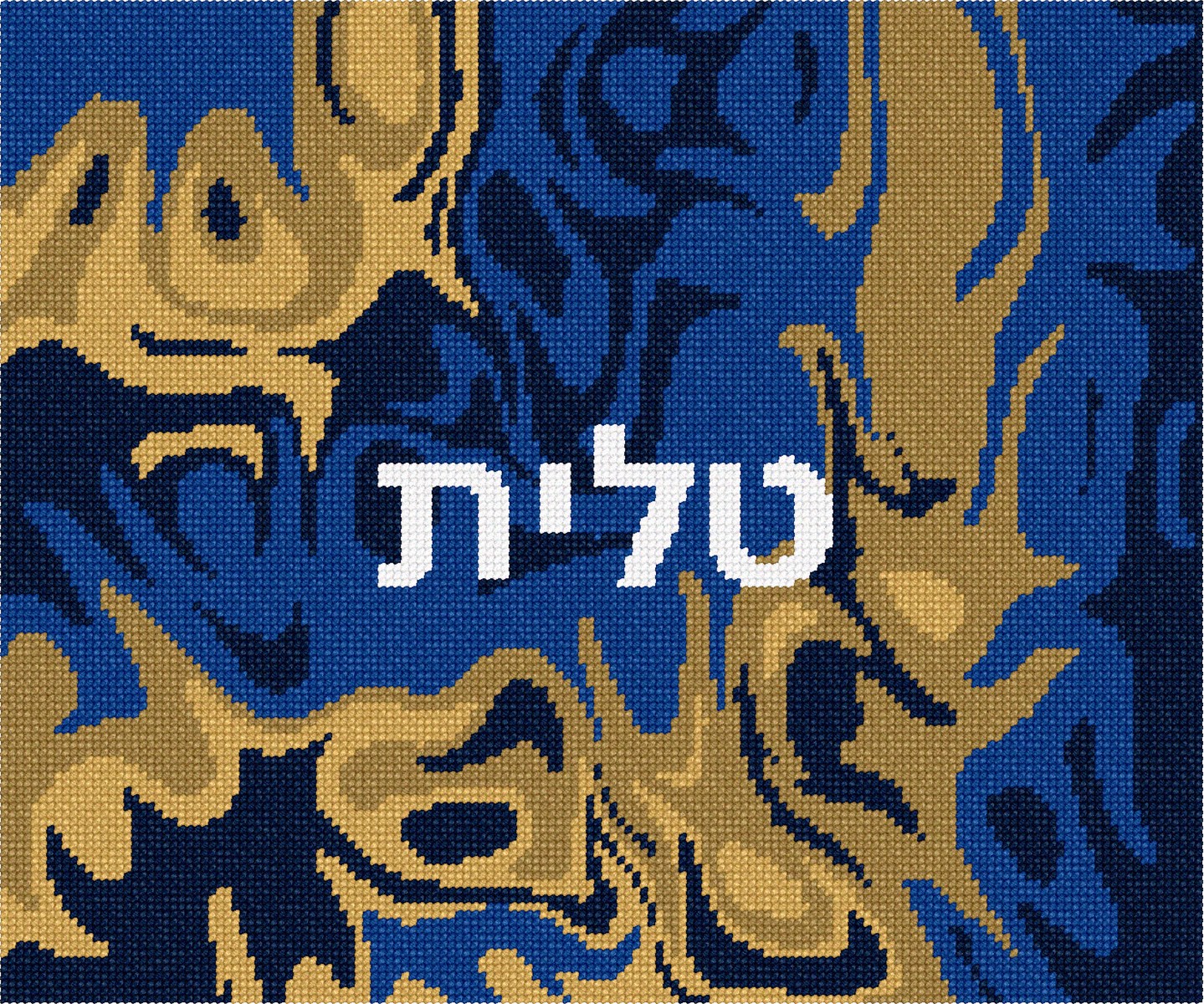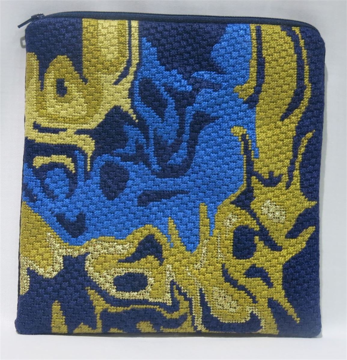 The colors on this tallis bag needlepoint are rich and majestic. Stitch this beauty for a bar mitzvah boy. This contemporary design will be appreciated till 120. It is suitable for husbands, fathers, and grandfathers as well. You stitch the front. After it is completely stitched, it is sent to a professional finisher who adds a lining, back, and matching zipper.