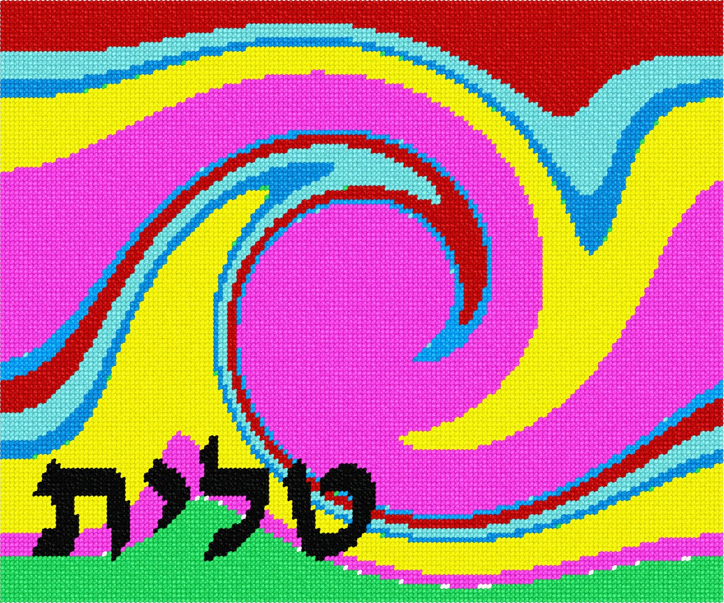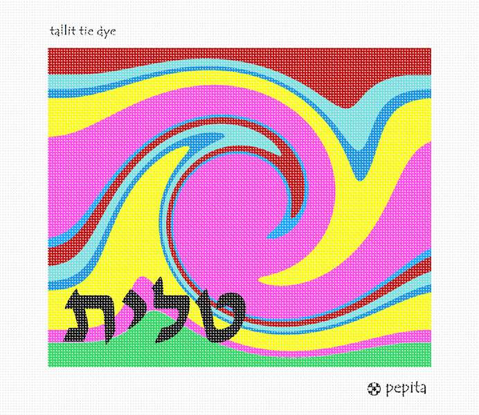 A tallit in a tie dye theme. It's cool, it's in style, it's perfect. This is a modern, neat design. You stitch the front. After it is completely stitched, it is sent to a professional finisher who adds a lining, back, and matching zipper.