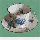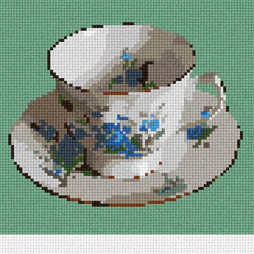 A teacup and saucer, in lavender-themed colors. Based on a photo by Lydia Kisch. Even if you aren't British, you may still have a delicate ornate teacup that you use to savor a hot fragrant tea. See "teacup sage" design by pepita for a coordinating canvas.