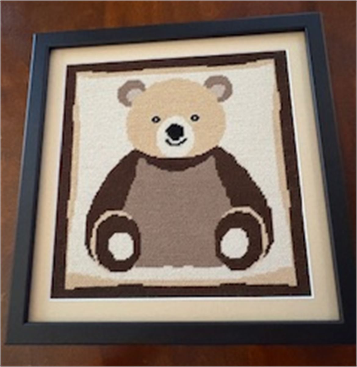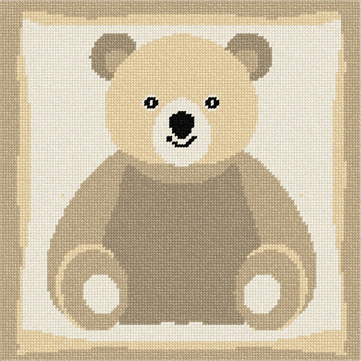 This teddy bear looks so dear, so he is named Teddy Dear. Neutral tones enhance this lovable, easy needlepoint design. This is perfect for a baby nursery.