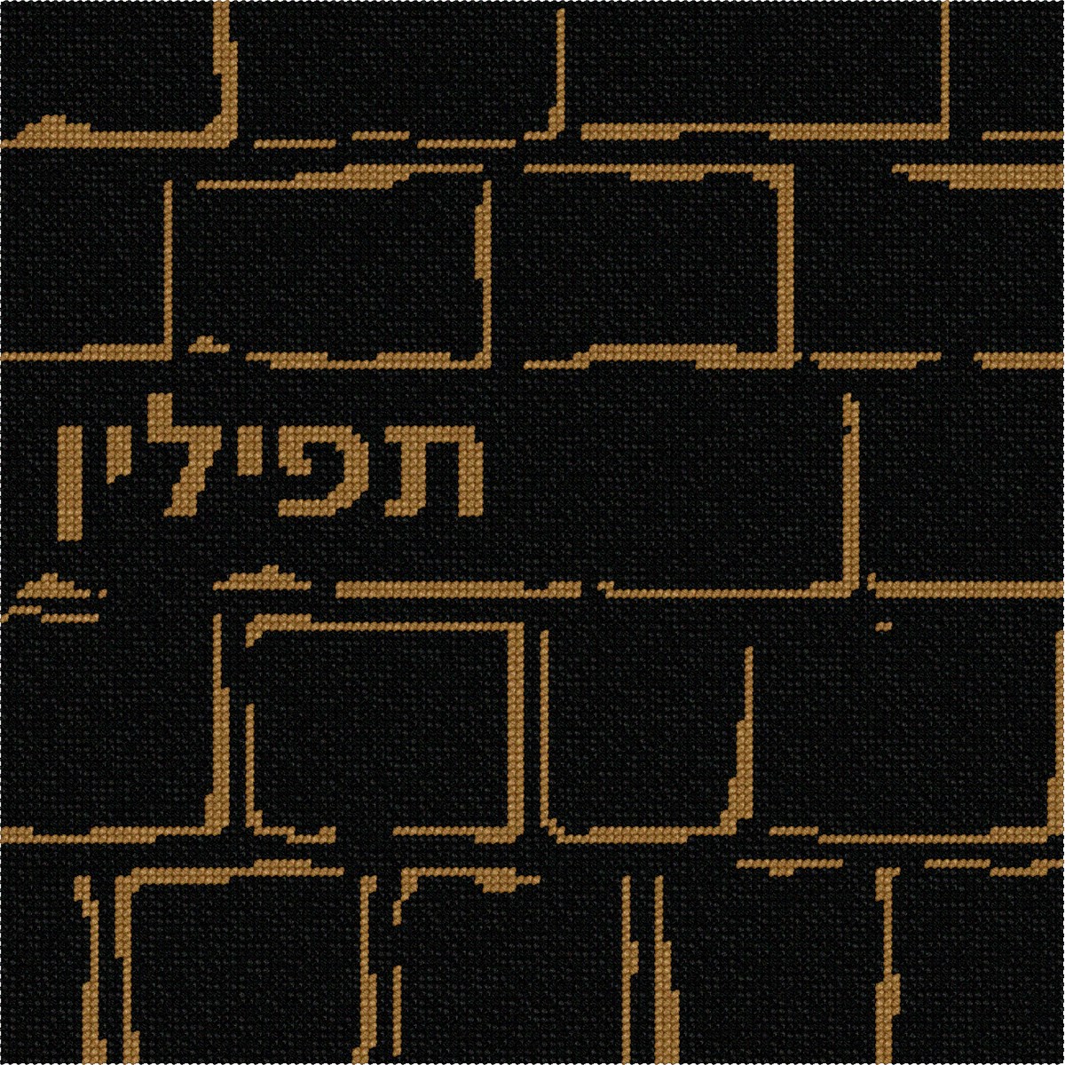 The Western Wall, or “Wailing Wall”, is the most religious site in the world for the Jewish people. Located in the Old City of Jerusalem, it is the western support wall of the Temple Mount. Thousands of people journey to the wall every year to visit and recite prayers. This is a modern, neat design. You stitch the front. This is a tefillin needlepoint canvas that is gifted to a bar mitzvah boy. After it is completely stitched, it is sent to a professional finisher who adds a lining, back, and matching zipper.