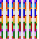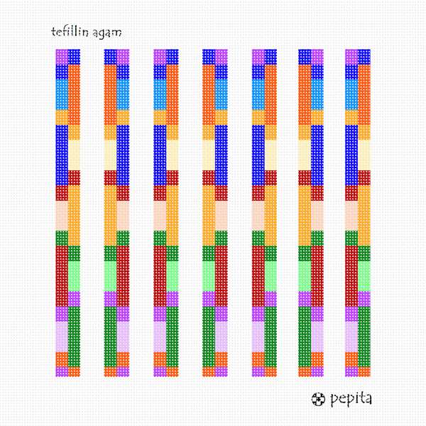 Yakov Agam is a famous Israeli artist, known especially for "Agamographs," a kinetic art form of his invention. This tefillin bag design is based on some of his work.