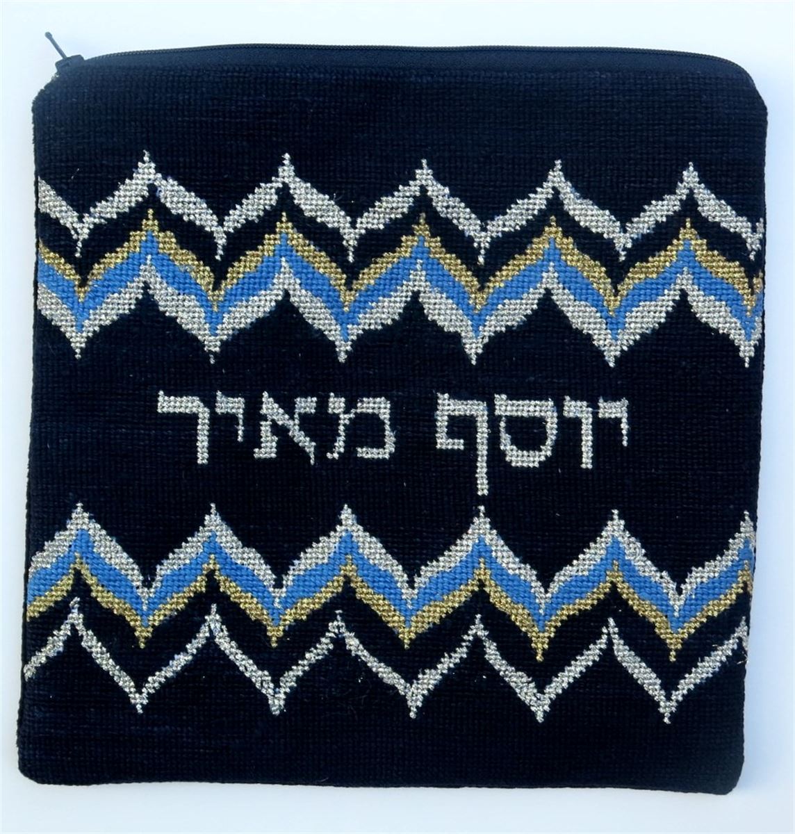 Tefillin bag or koracha in colors of royalty. Mazel T ov on the bar mitzvah of your loved one. Bargello is always popular in needlepoint, and these colors make the design all that richer. See coordinating tallit bag design. There is also a siddur cover available.