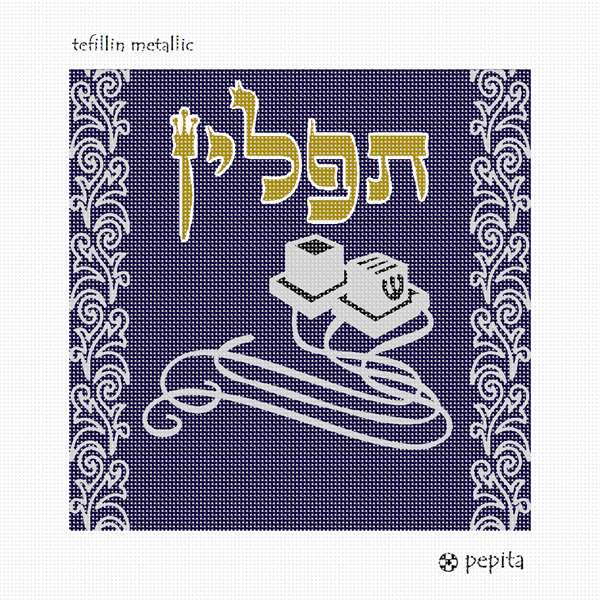 A Tefillin Bag design using metallic shades of color. Stitch this one with metallic thread against a velvet or pearl cotton background to get the full effect.