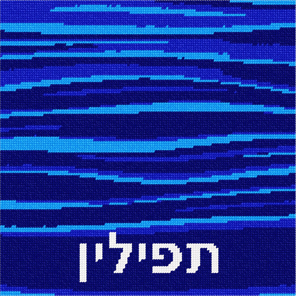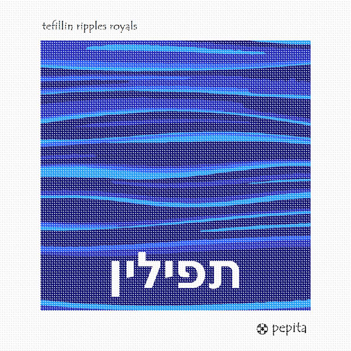 Tefillin bag in shades of royal blues in a ripple pattern. See coordinating tallit bag.