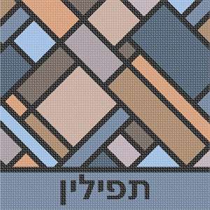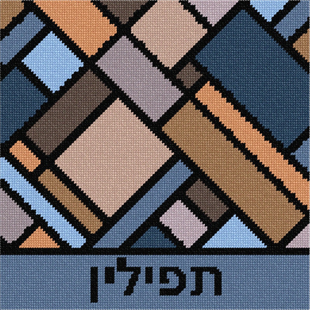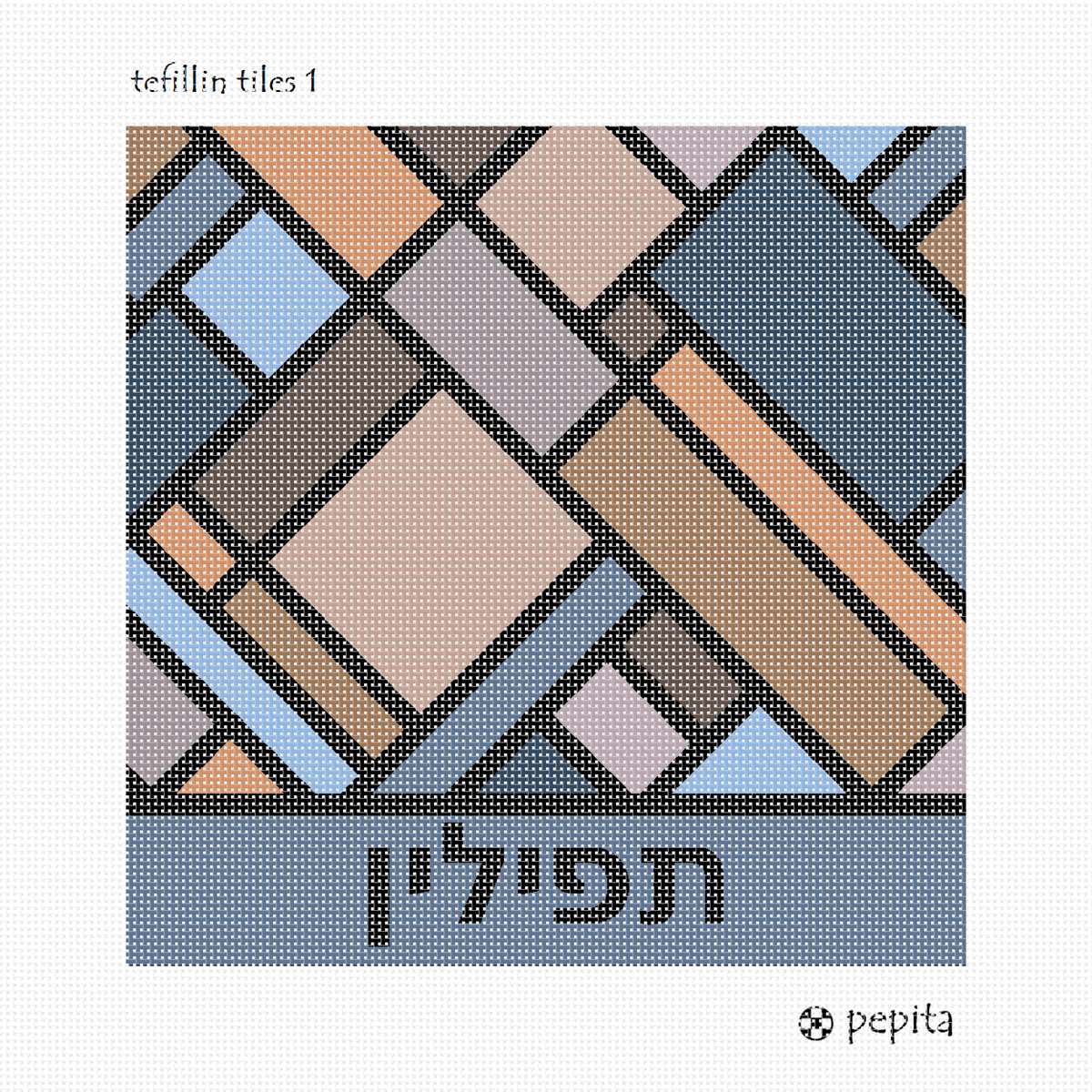 A tefillin needlepoint for the front of a tefillin bag in a tile pattern. See coordinating tallit bag design.