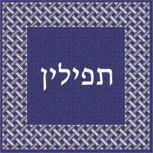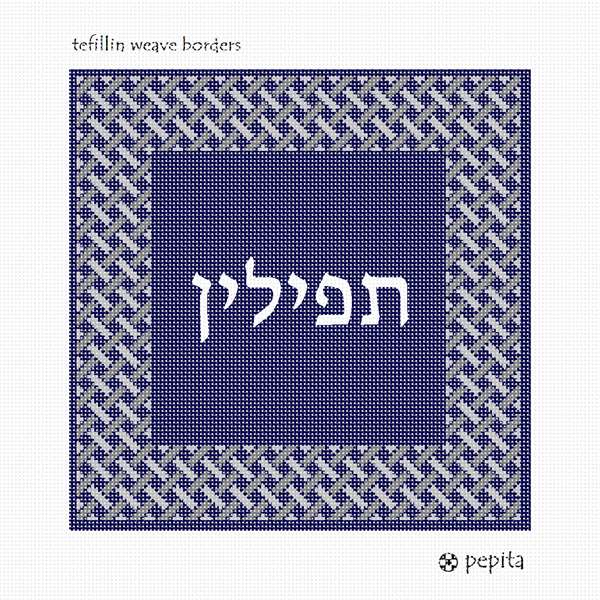 A design with woven borders, using strips of alternating off-white shades. See matching tallit bag. Geometrics are very vogue in tallit and tefillin bags today. You stitch the front. After it is completely stitched, it is sent to a professional finisher who adds a lining, back, and matching zipper.