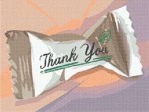 A thank you mint in its wrapper.
